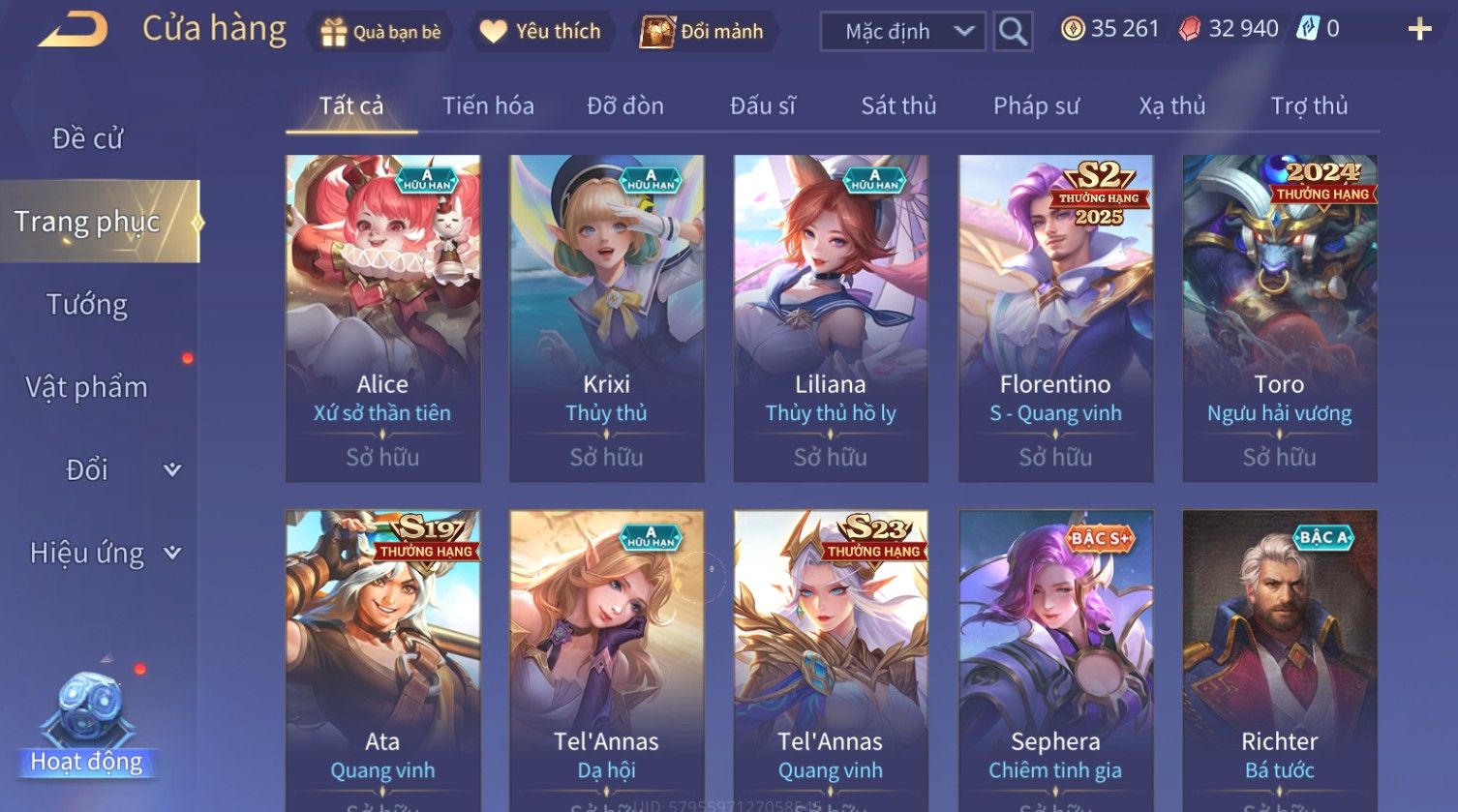 Trạng Thái: Nick có SĐT or Gmail Của Shop( Có Thể Thay Đổi)