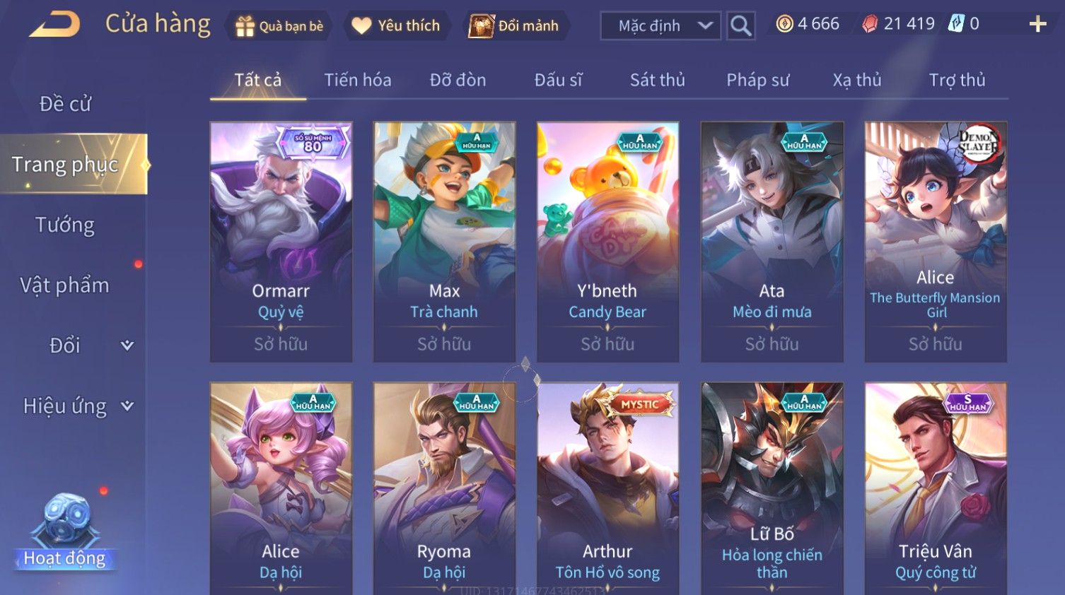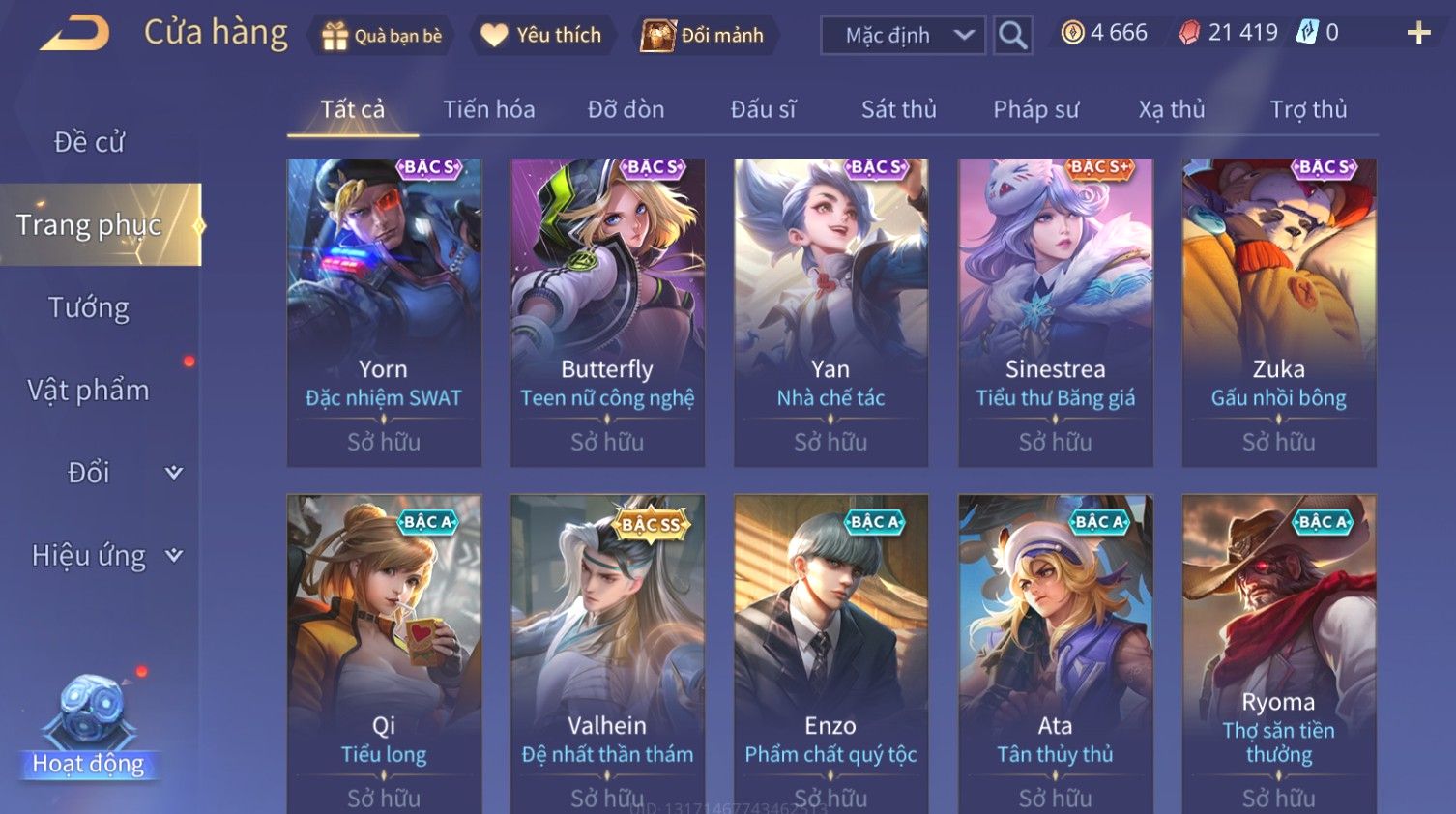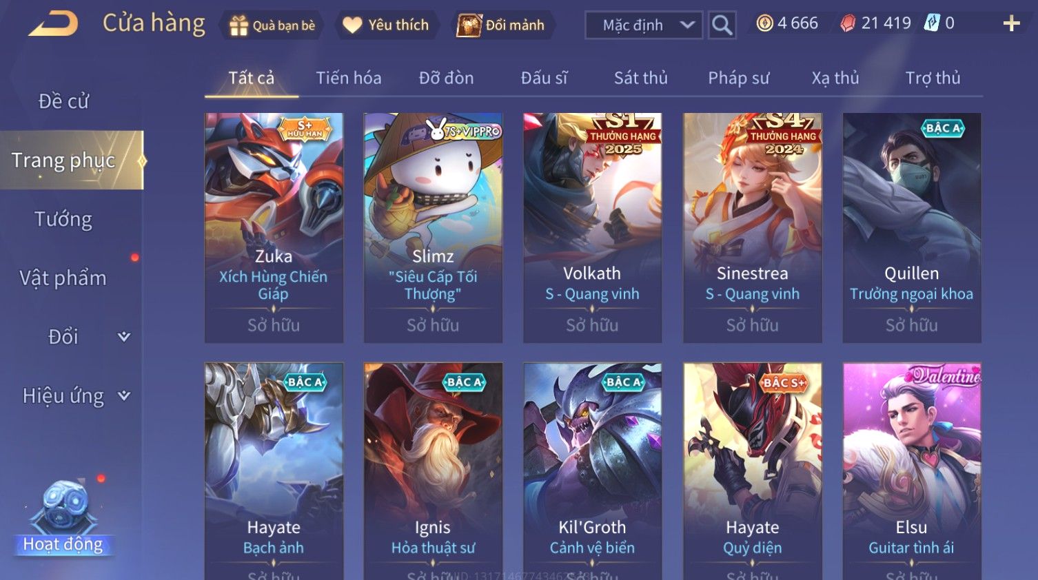 Nổi bật: Skin: Bijan Hoàng Kim Cơ Giáp×Valhein Đệ Nhất Thần Thám×Elsu Guitar Tình Ái×Yan Công Tước Norman×Ryoma Thanh Long Bang Chủ×Arthur Tôn Hổ Vô Song×BIJAN LỮ HÀNH THỜI KHÔNG