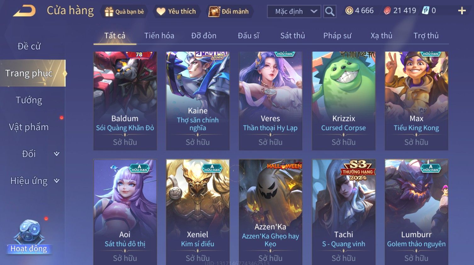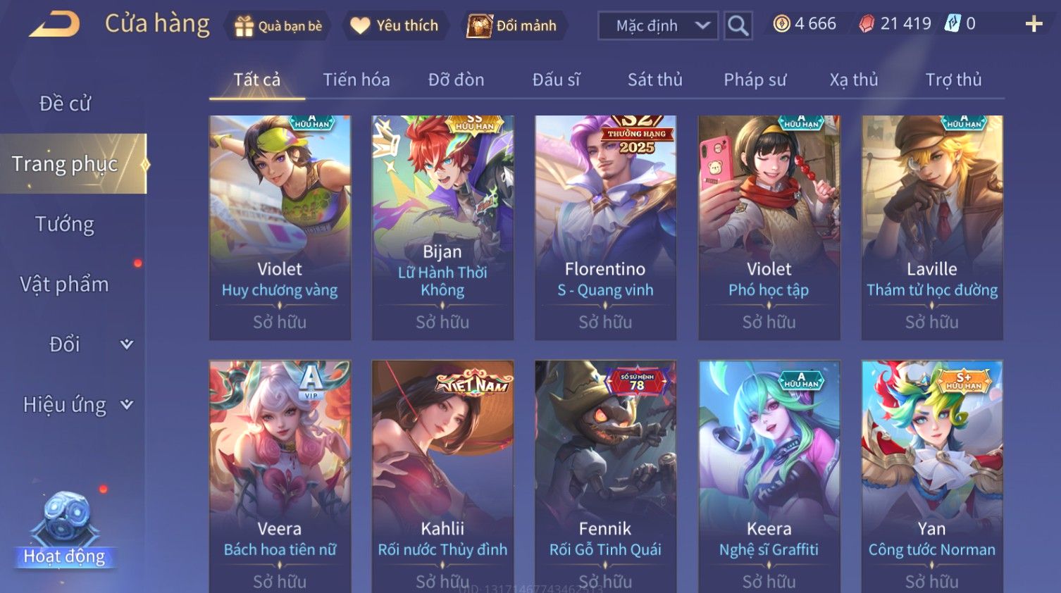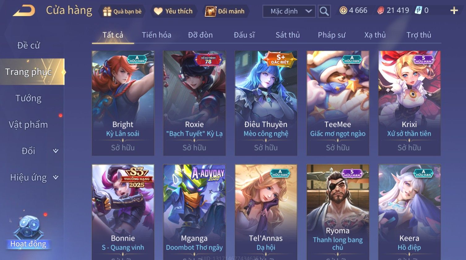 Nổi bật: Skin: Bijan Hoàng Kim Cơ Giáp×Valhein Đệ Nhất Thần Thám×Elsu Guitar Tình Ái×Yan Công Tước Norman×Ryoma Thanh Long Bang Chủ×Arthur Tôn Hổ Vô Song×BIJAN LỮ HÀNH THỜI KHÔNG