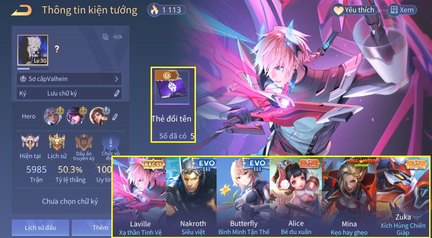 Nổi bật: Laville Xạ Thần Tinh Vệ,Full Ngọc, Nhiều Skin Đẹp