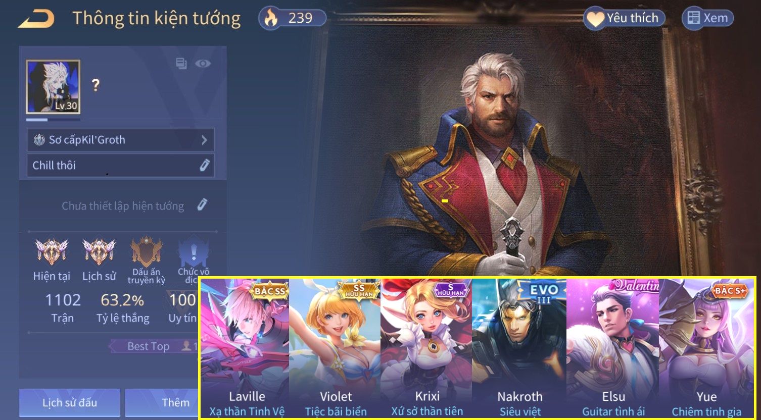 Nổi bật: Skin: Laville Xạ thần Tinh Vệ×Violet Tiệc Bãi Biển×Omen Quái Kiệt Guitar×Full Ngọc, Nhiều Skin Đẹp