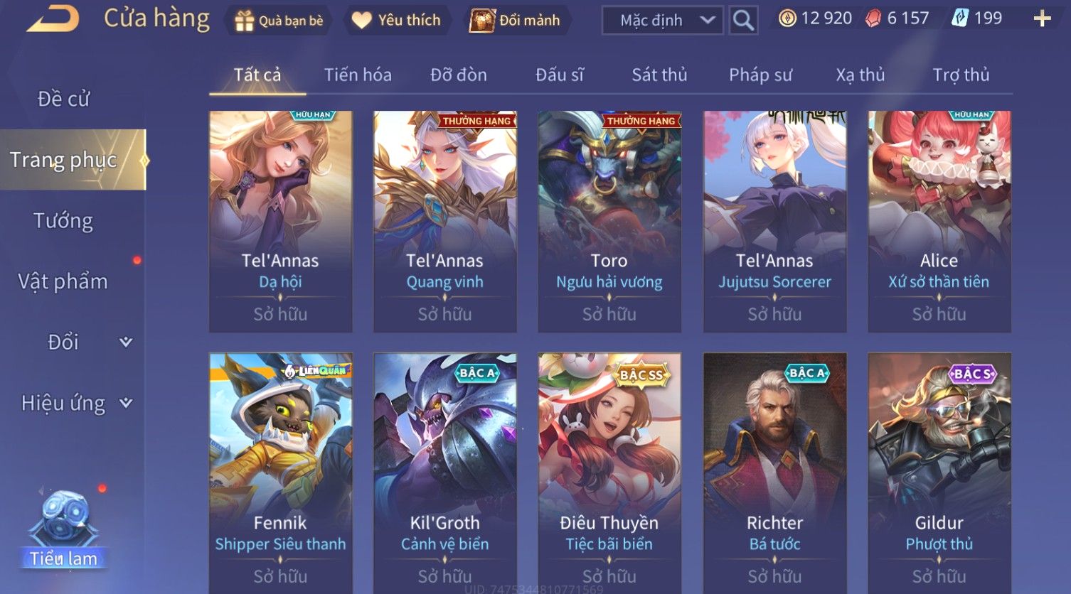 Trạng Thái: Nick có SĐT or Gmail Của Shop( Có Thể Thay Đổi)