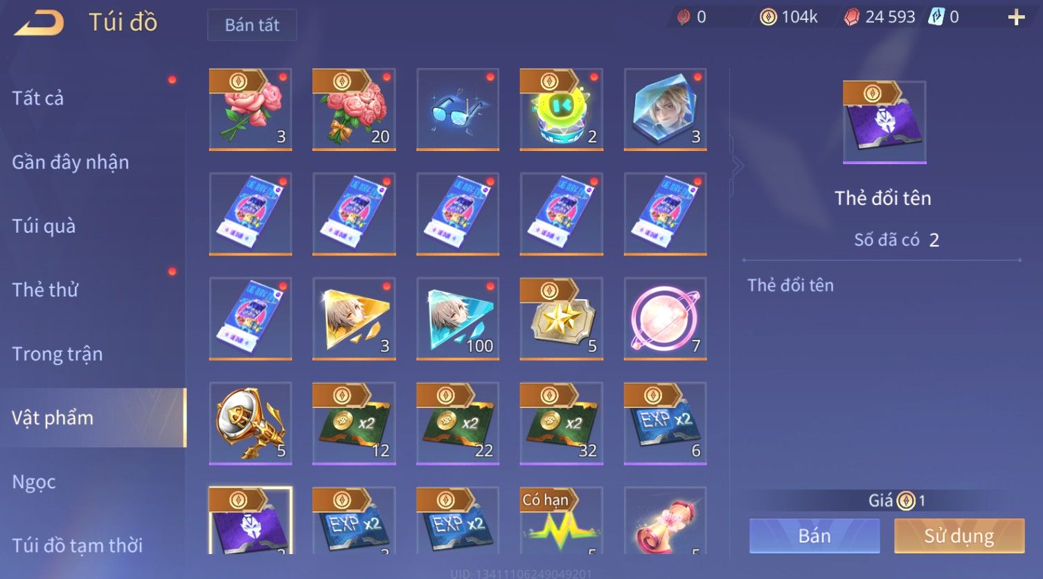 Trạng Thái: Nick có SĐT or Gmail Của Shop( Có Thể Thay Đổi)