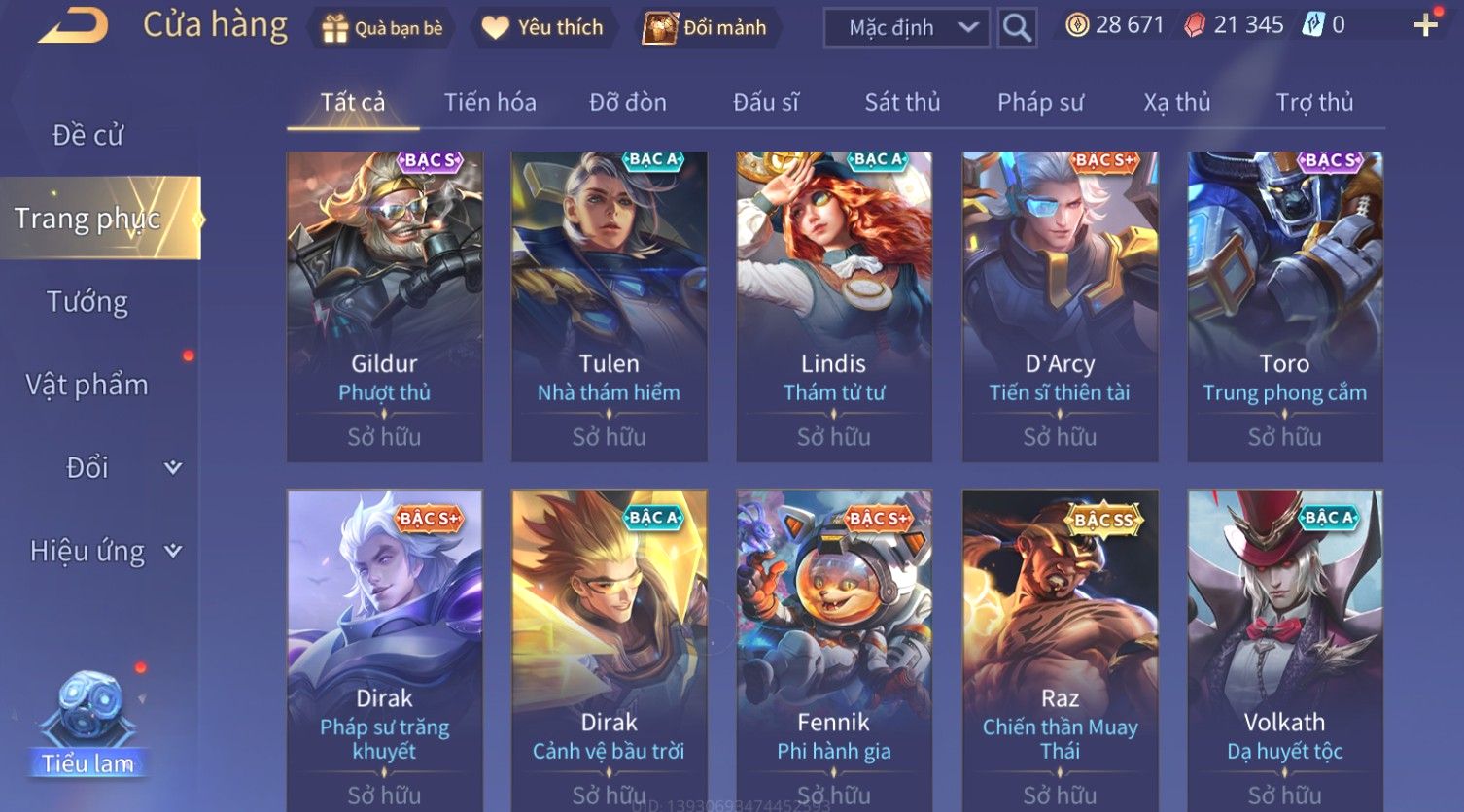 Nổi bật: Skin: Raz Chiến Thần Muay Thái×Valhein Đệ Nhất Thần Thám×Richter Thần Kiếm Susanoo×Capheny Kimono×Yorn Vệ Binh Ngân Hà×Bijan Hoàng Kim Cơ Giáp×Omen Quái Kiệt Guitar×