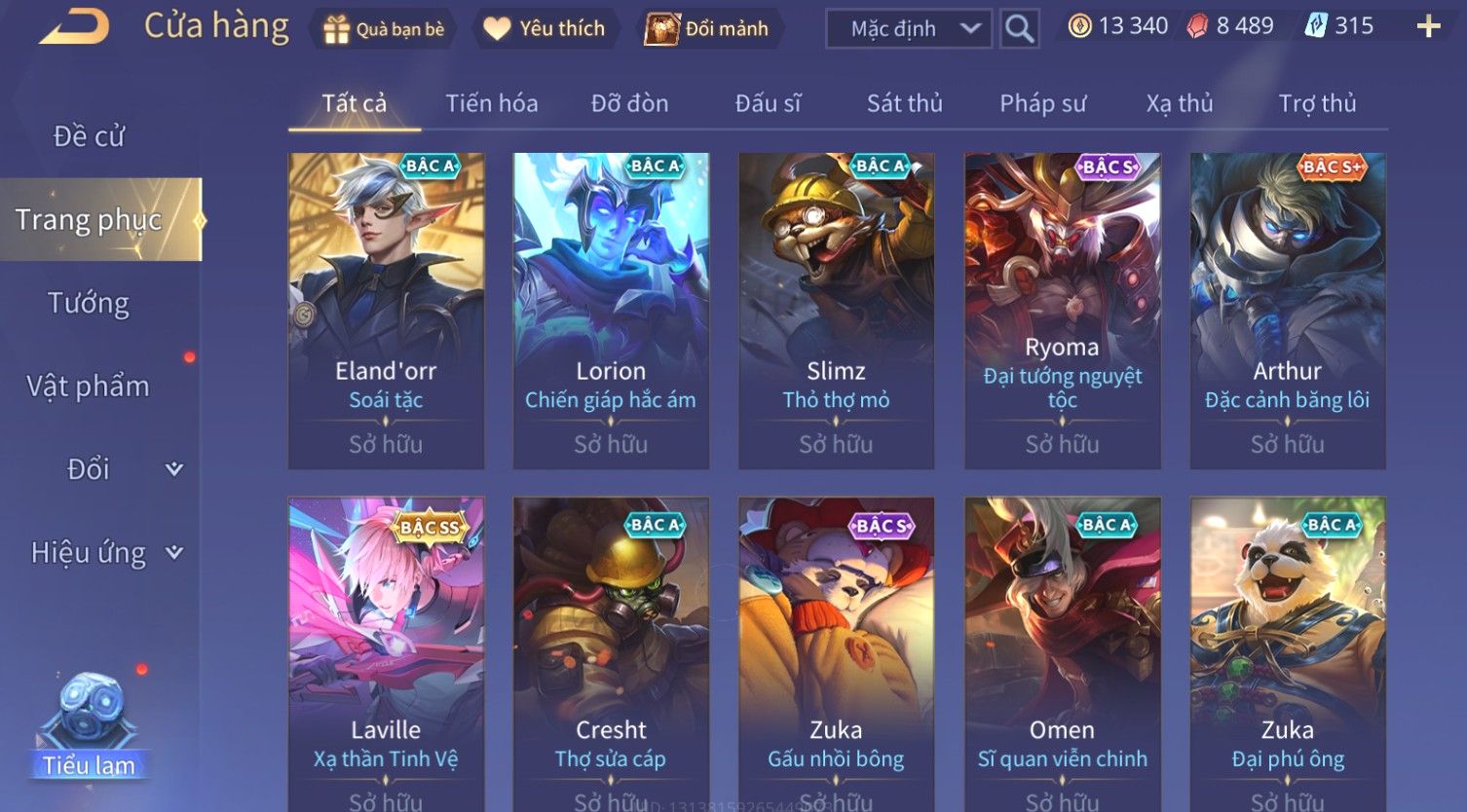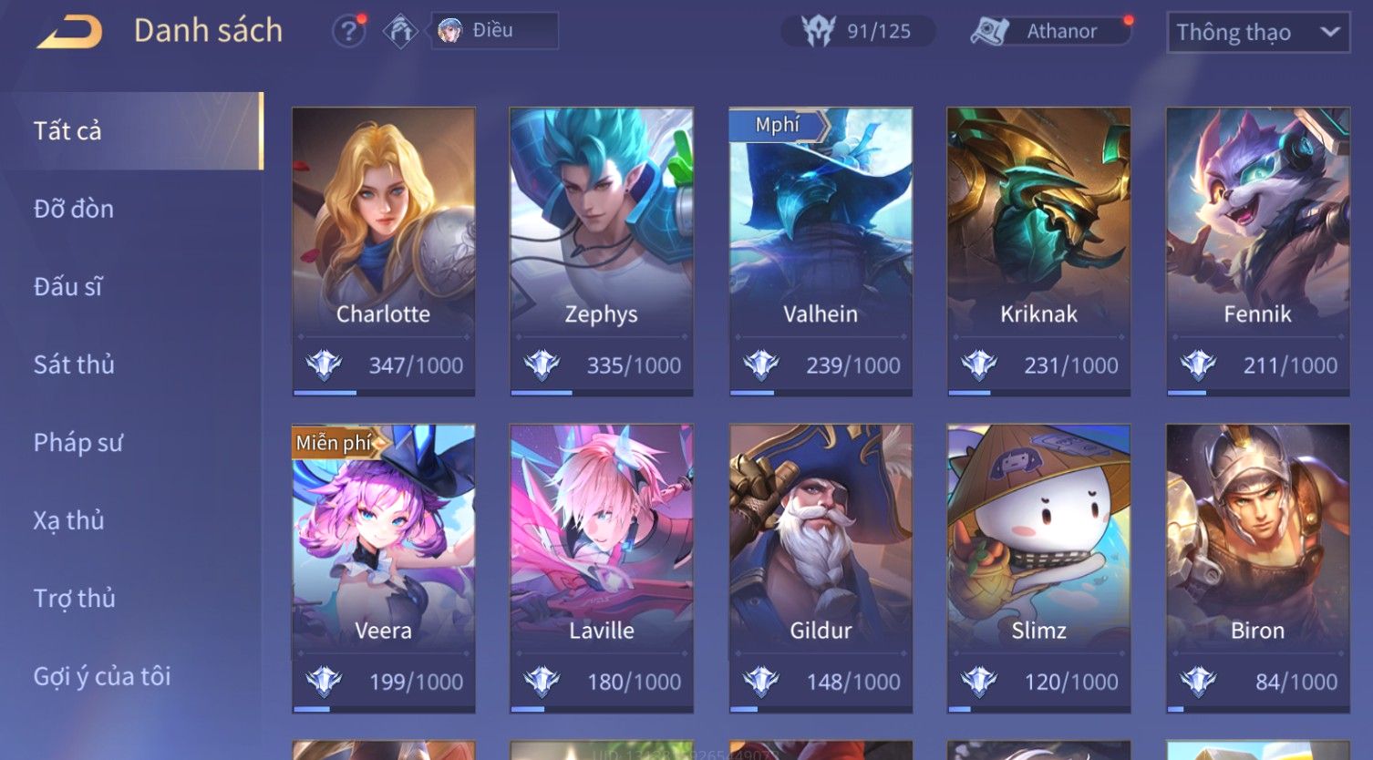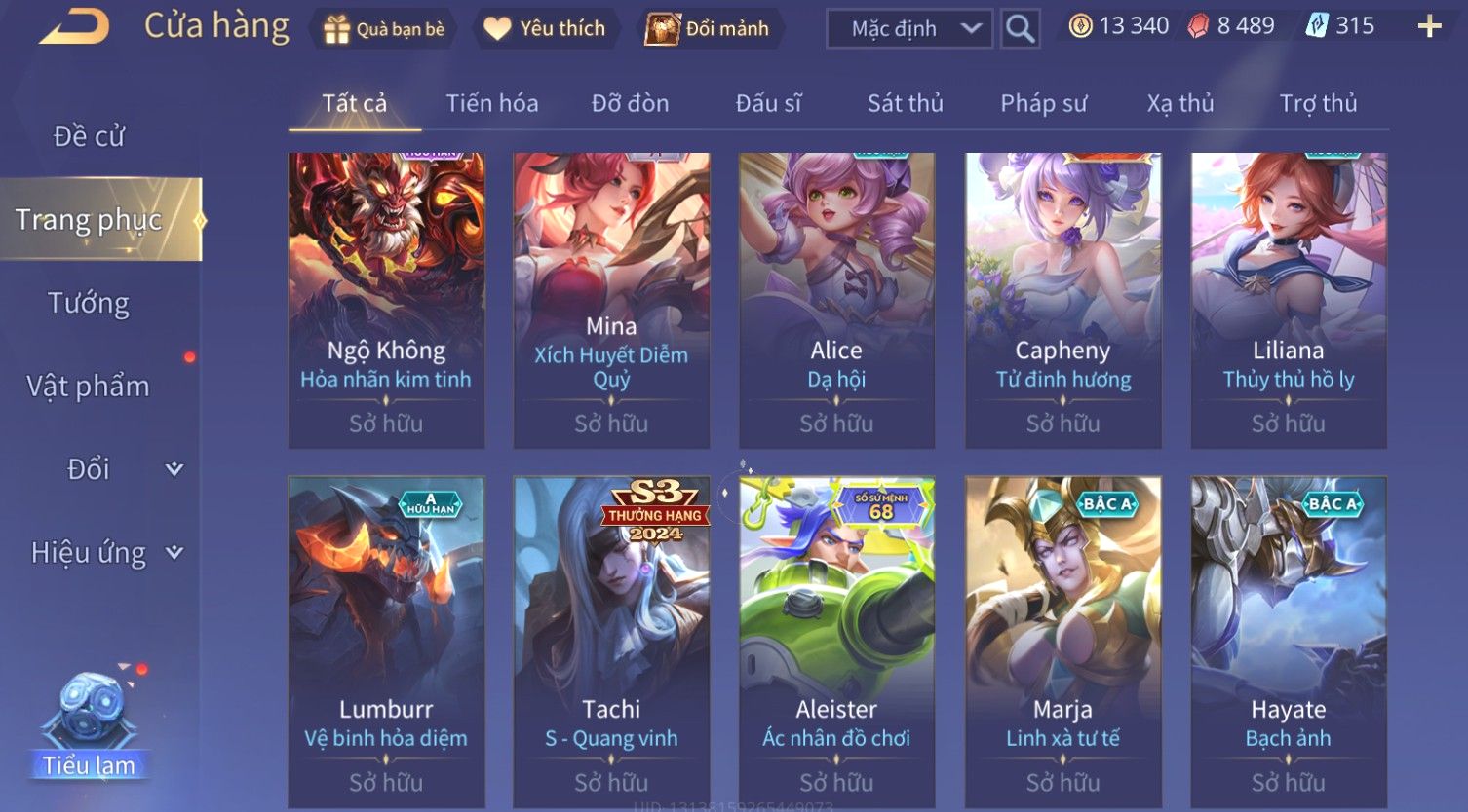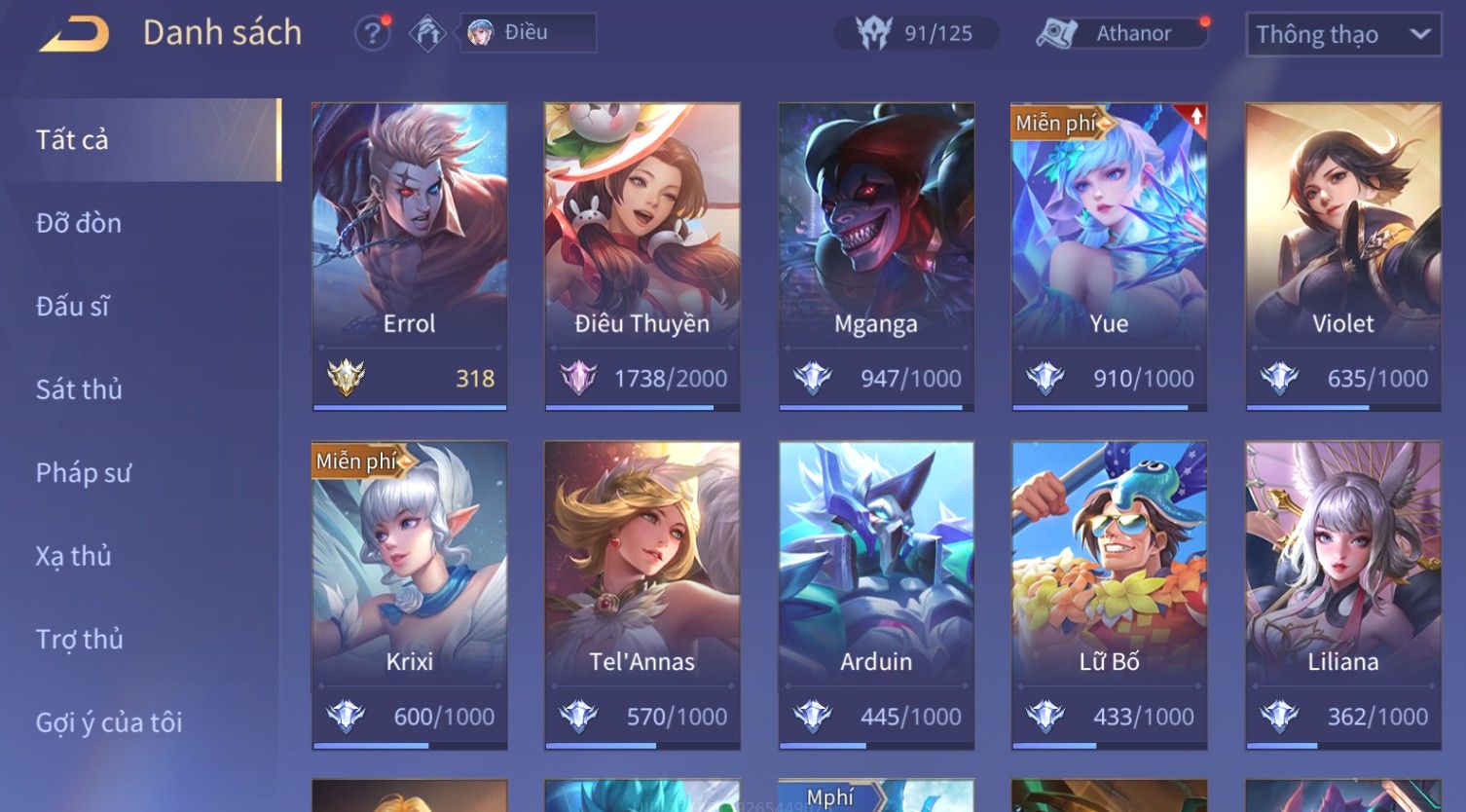 Nổi bật: Skin: Yorn Long Thần Soái×Điêu Thuyền Tiệc Bãi Biển×Liliana Nguyệt Mị Ly×Laville Xạ thần Tinh Vệ×Capheny Tử Đinh Hương×