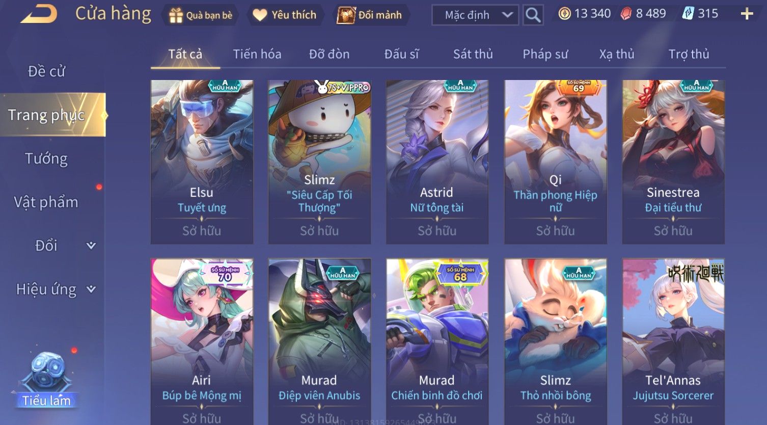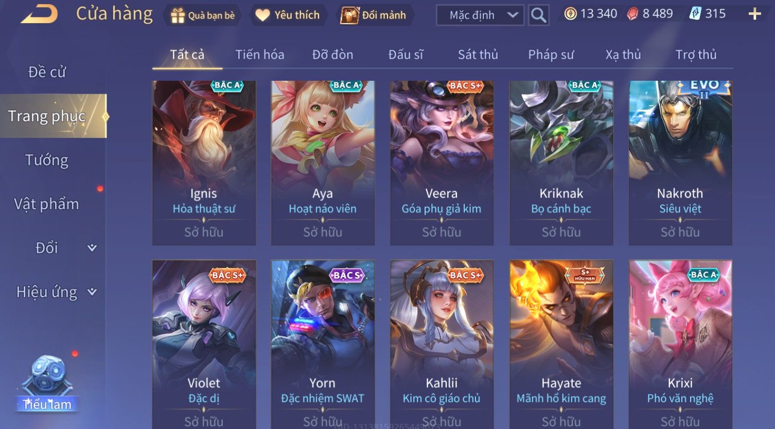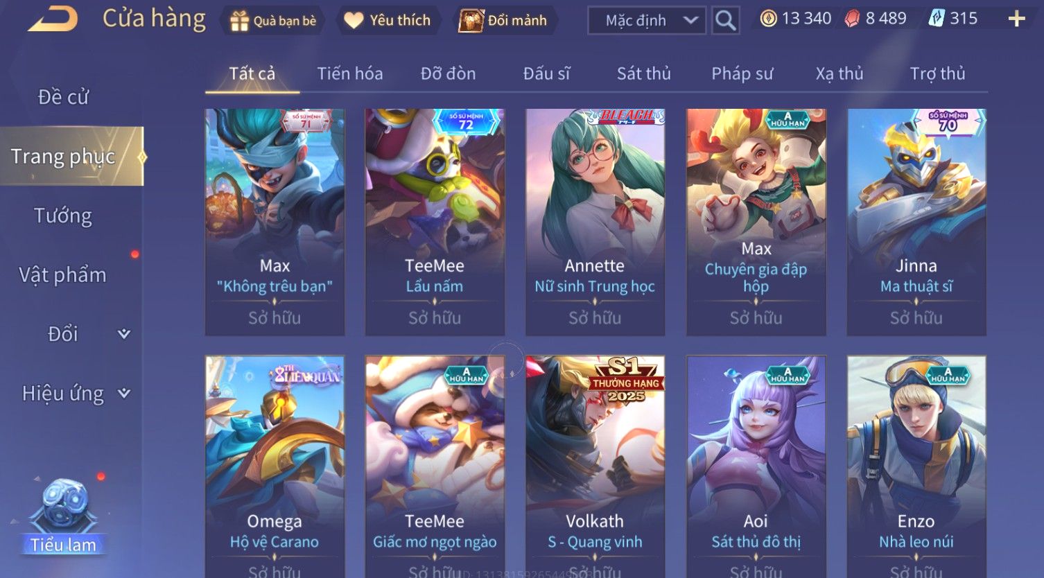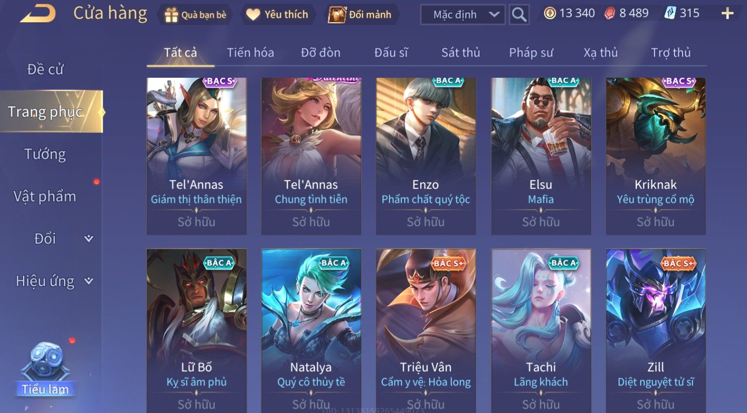 Nổi bật: Skin: Yorn Long Thần Soái×Điêu Thuyền Tiệc Bãi Biển×Liliana Nguyệt Mị Ly×Laville Xạ thần Tinh Vệ×Capheny Tử Đinh Hương×