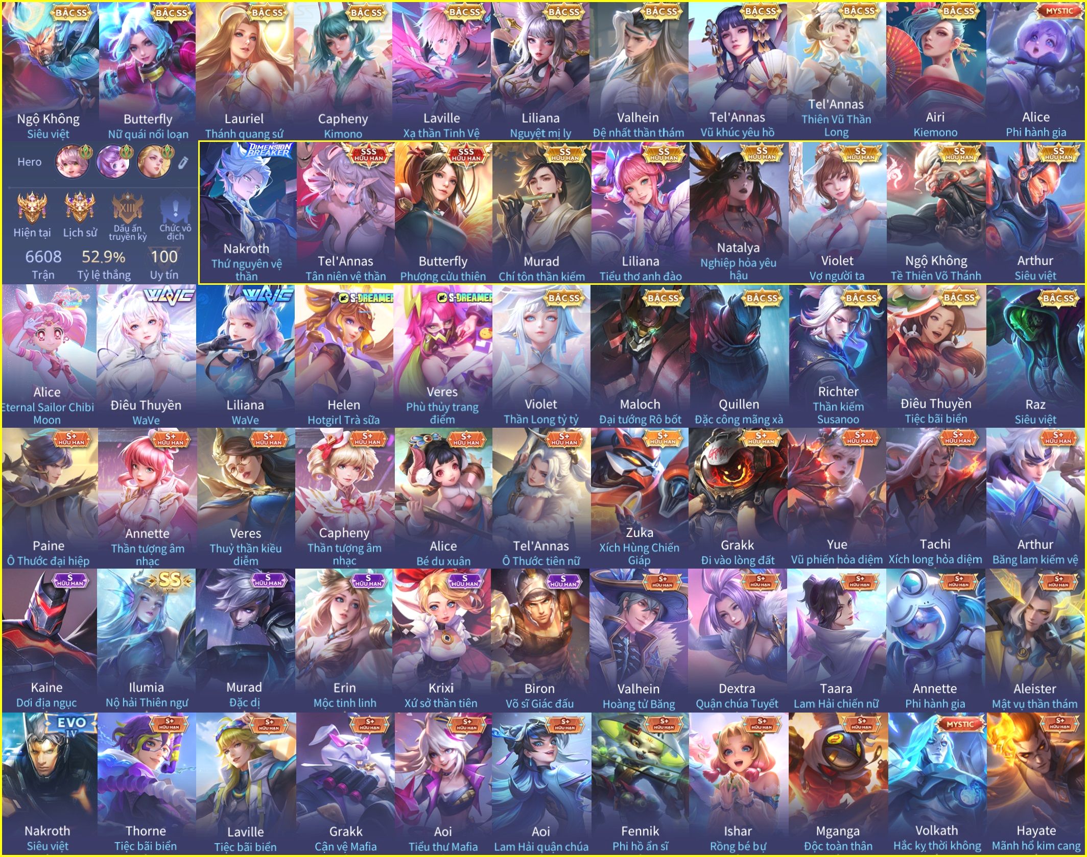 Nổi bật: Skin: Nakroth Thứ Nguyên Vệ Thần×Tel'Annas Tân Niên Vệ Thần×Butterfly Phượng Cửu Thiên×Cùng Dàn SS VIP