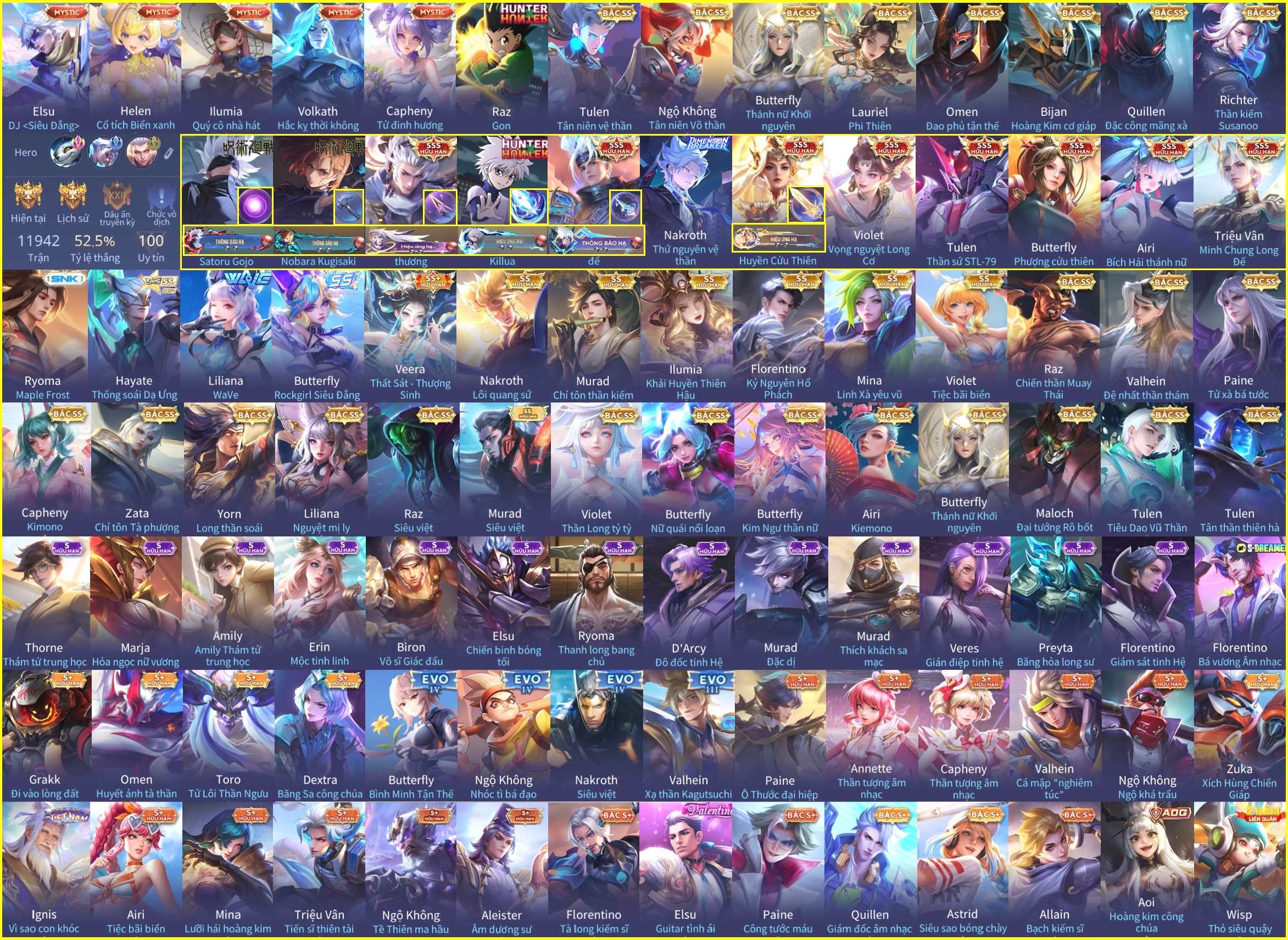 Nổi bật: Skin: Tulen Satoru Gojo×Nakroth Bạch Diện Chiến Thương×Nakroth Killua×Nakroth Thứ Nguyên Vệ Thần×Yena Huyền Cửu Thiên×Violet Vọng Nguyệt Long Cơ×Tulen Thần Sứ STL-79×Butterfly Phượng Cửu Thiên×Airi Bích Hải×Nakroth Qủy Thương Lập Đế×Violet Nobara Kugisaki× Cùng Dàn SS Hữu Hạn Vip× Có Lk Facebook Thi Thoảng Có Người Chơi