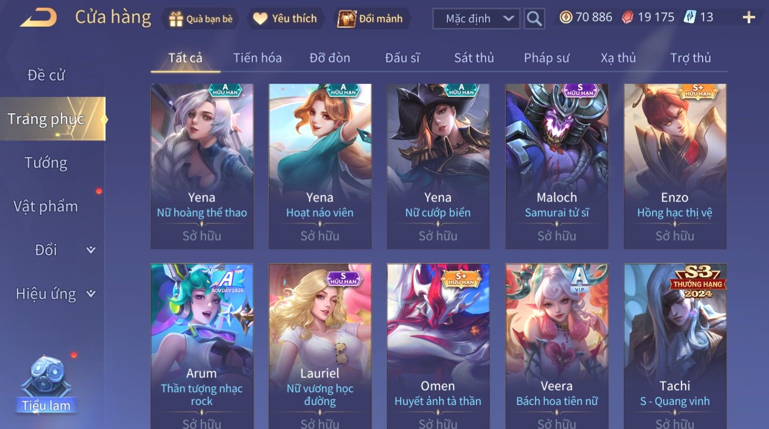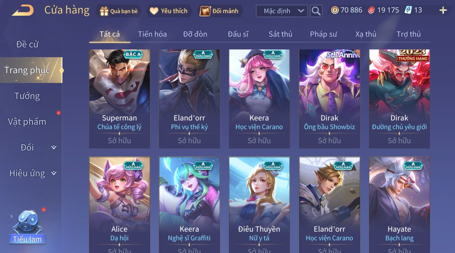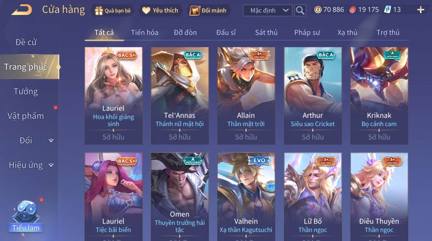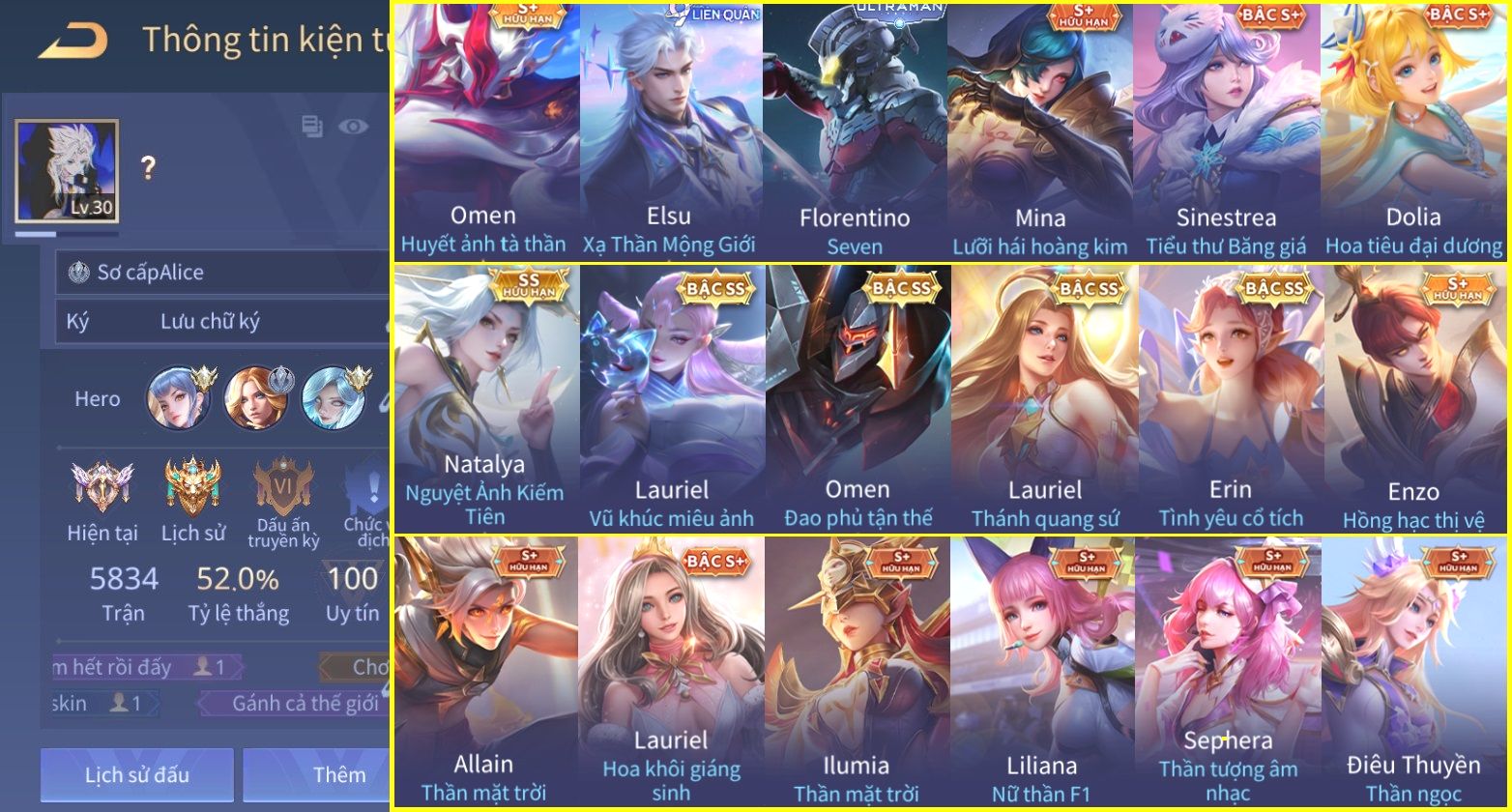 Nổi bật: Skin: Natalya Nguyệt Ảnh Kiếm Tiên×Lauriel Vũ Khúc Miêu Ảnh×Lauriel Thánh Quang Sứ×Omen Đao Phủ Tận Thế×Erin Tình Yêu Cổ Tích