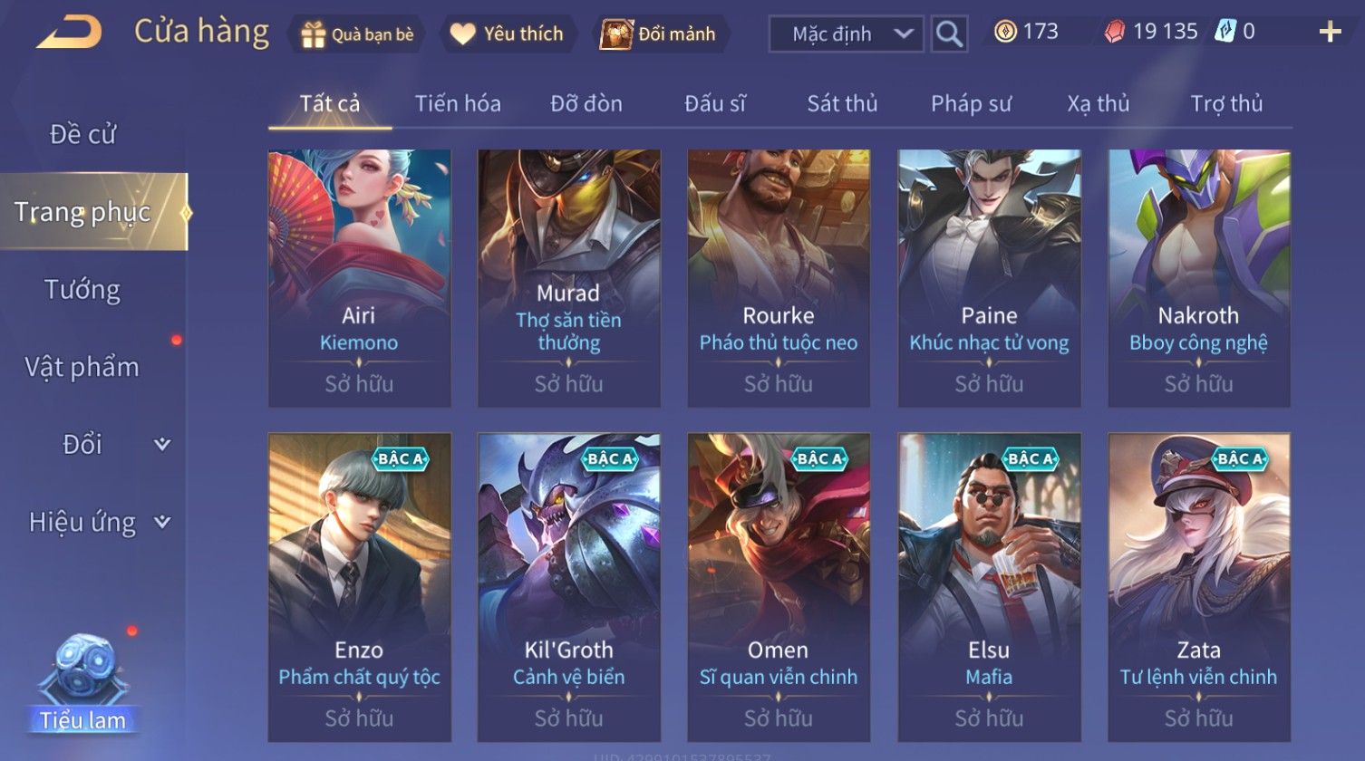 Trạng Thái: Nick có SĐT or Gmail Của Shop( Có Thể Thay Đổi)