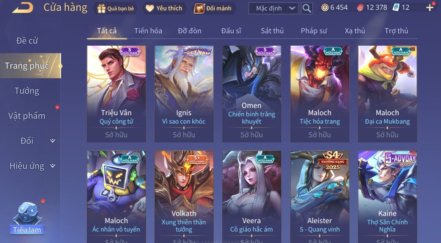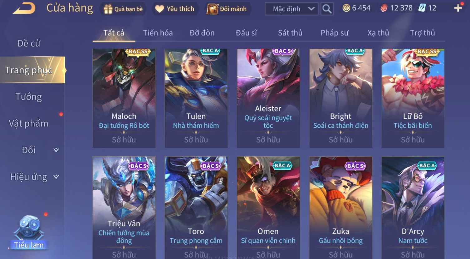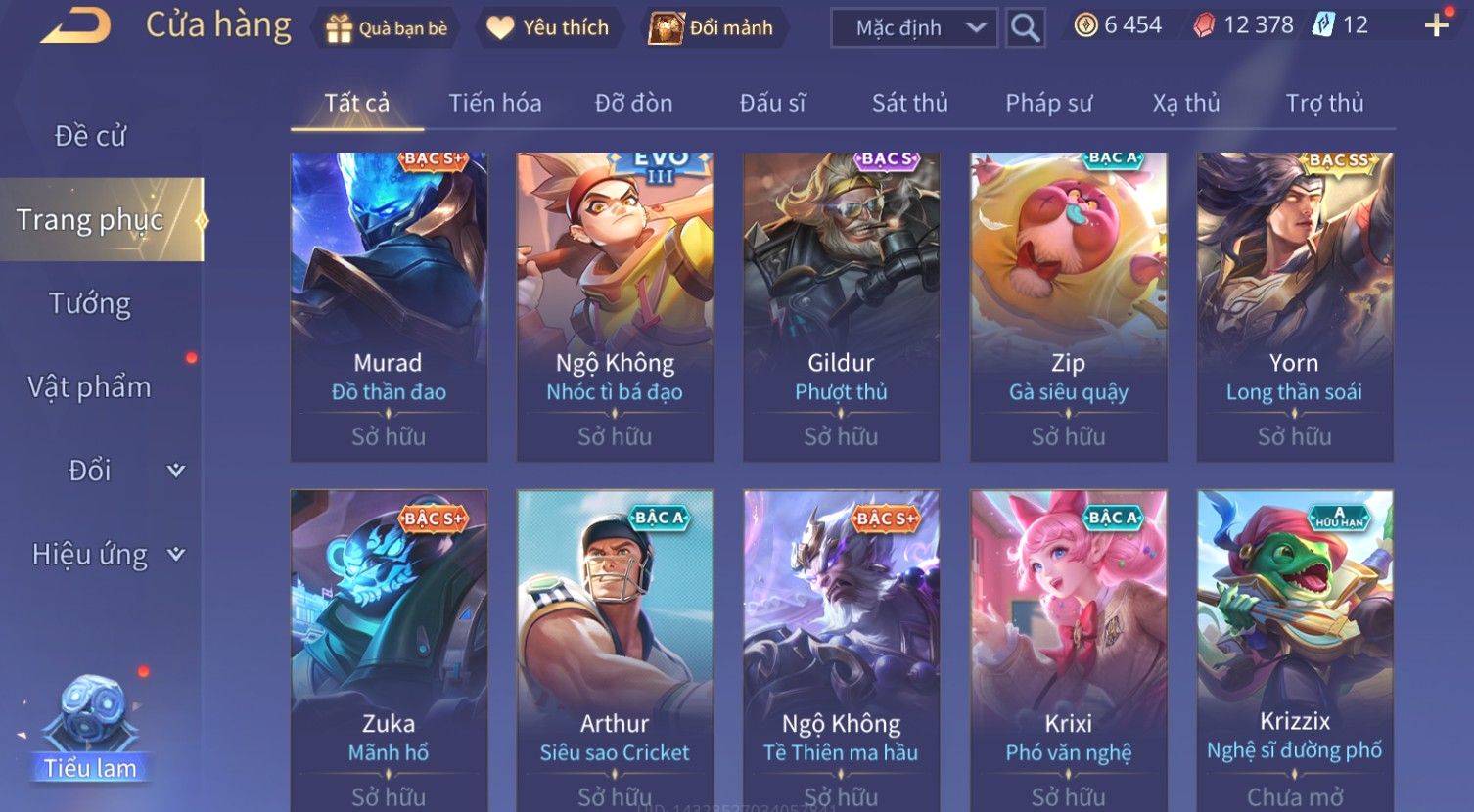 Nổi bật: Skin: Yorn Long Thần Soái×Ngộ Không Nhóc Tì Bá Đạo×Maloch Đại Tướng Rô Bốt×Gildur Tiệc Bãi Biển×Lữ Bố Tiệc Bãi Biển×Grakk Đi Vào Lòng Đất×Omen Chiến Binh Trăng Khuyết×