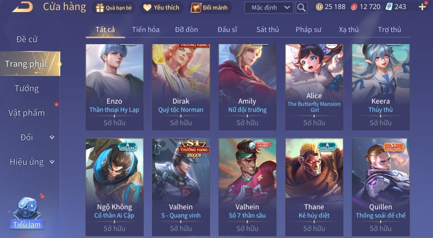 Trạng Thái: Nick có SĐT or Gmail Của Shop( Có Thể Thay Đổi)