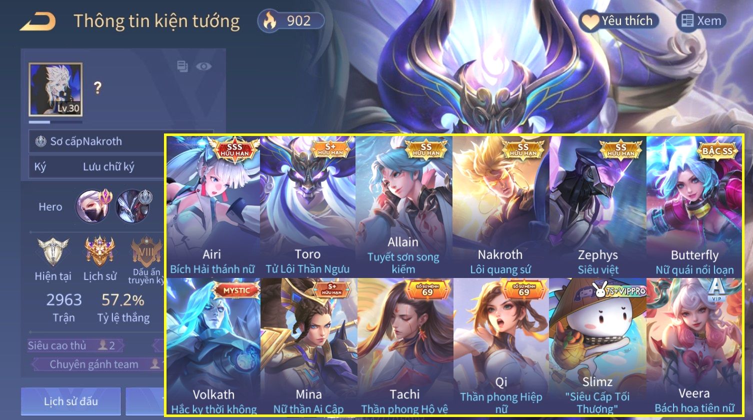 Nổi bật: Skin: Airi Bích Hải Thánh Nữ×Allain Tuyết Sơn Song Kiếm×Nakroth Lôi Quang Sứ×Zephys Siêu Việt×