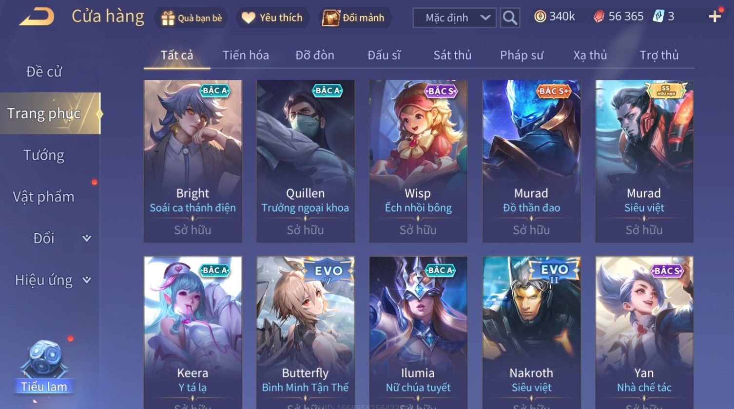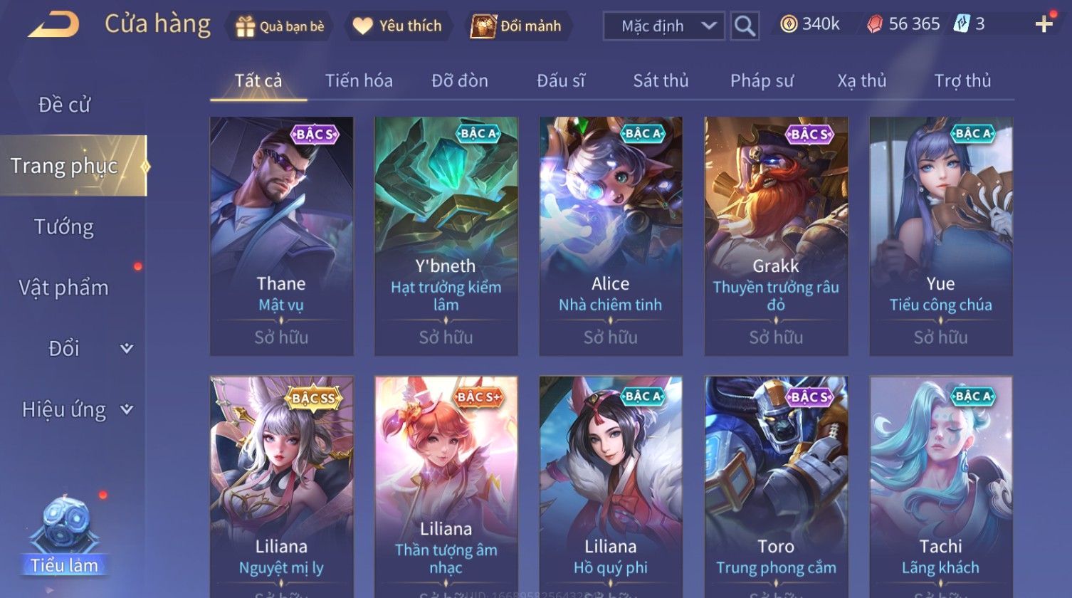 Trạng Thái: Nick có SĐT or Gmail Của Shop( Có Thể Thay Đổi)