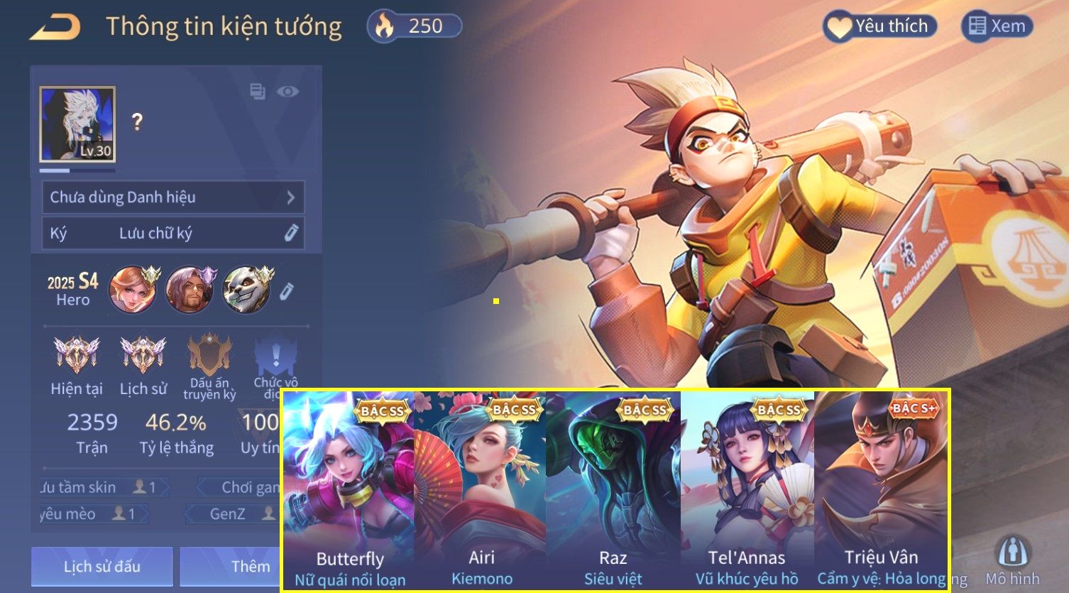 Nổi bật: Skin: Butterfly Nữ Quái Nổi Loạn×Airi Kiemono×Raz Siêu Việt×Tel'Annas Vũ Khúc Yêu Hồ×