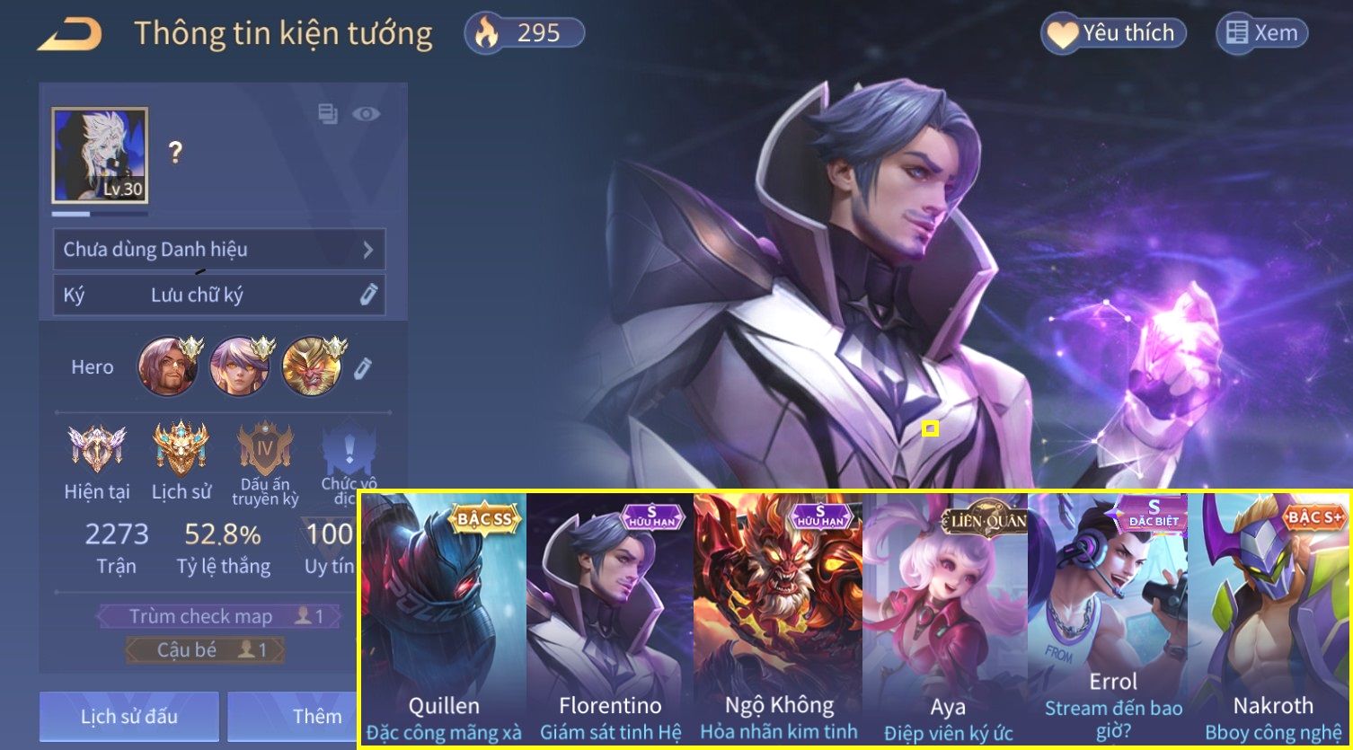 Nổi bật: Skin: Quillen Đặc Công Mãng Xà×Florentino Giám Sát Tinh Hệ×Ngộ Không Hỏa Nhãn Kim Tinh×