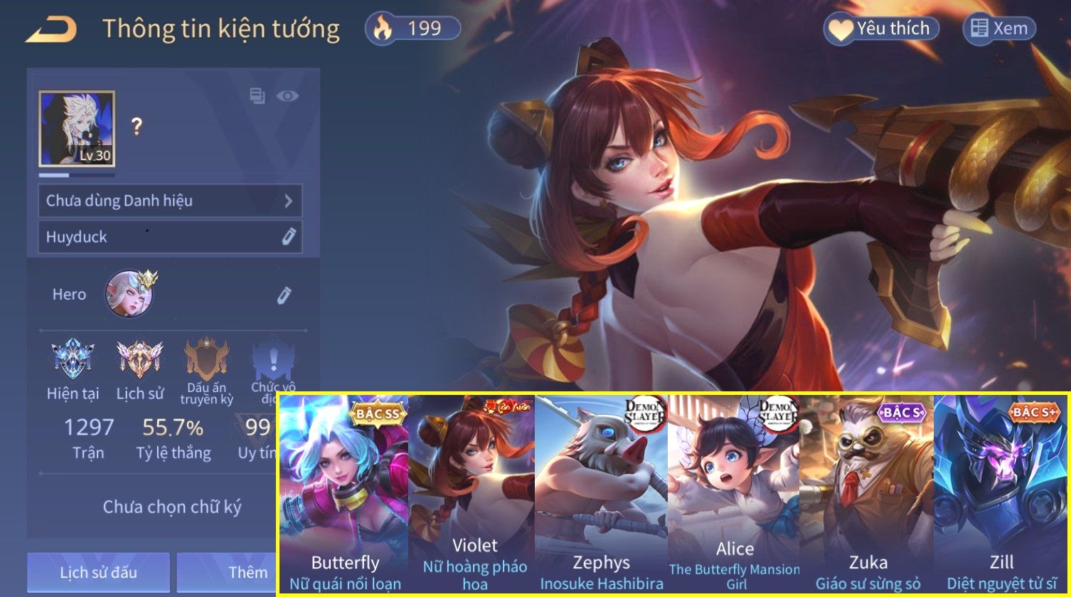 Nổi bật: Skin: Violet Nữ Hoàng Pháo Hoa×Butterfly Nữ Quái Nổi Loạn×
