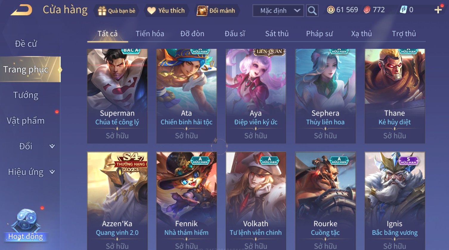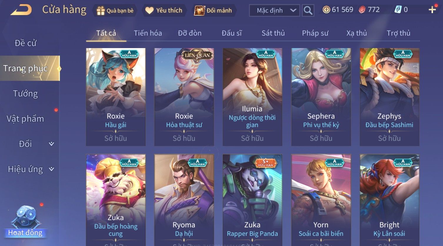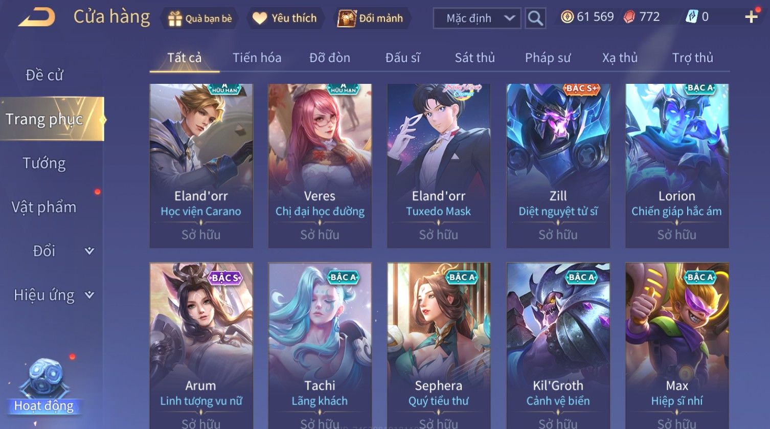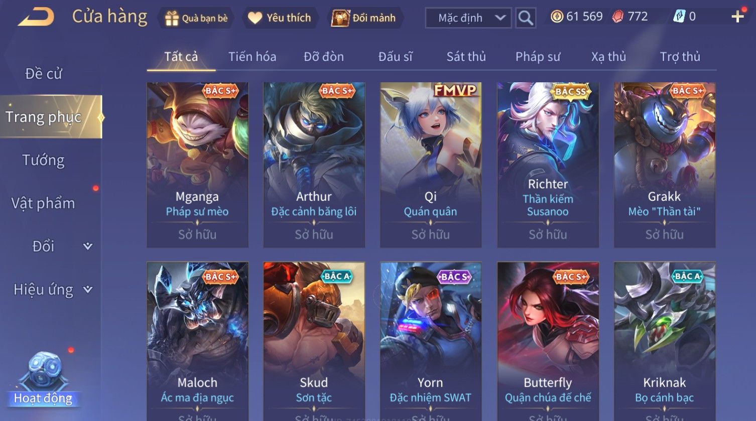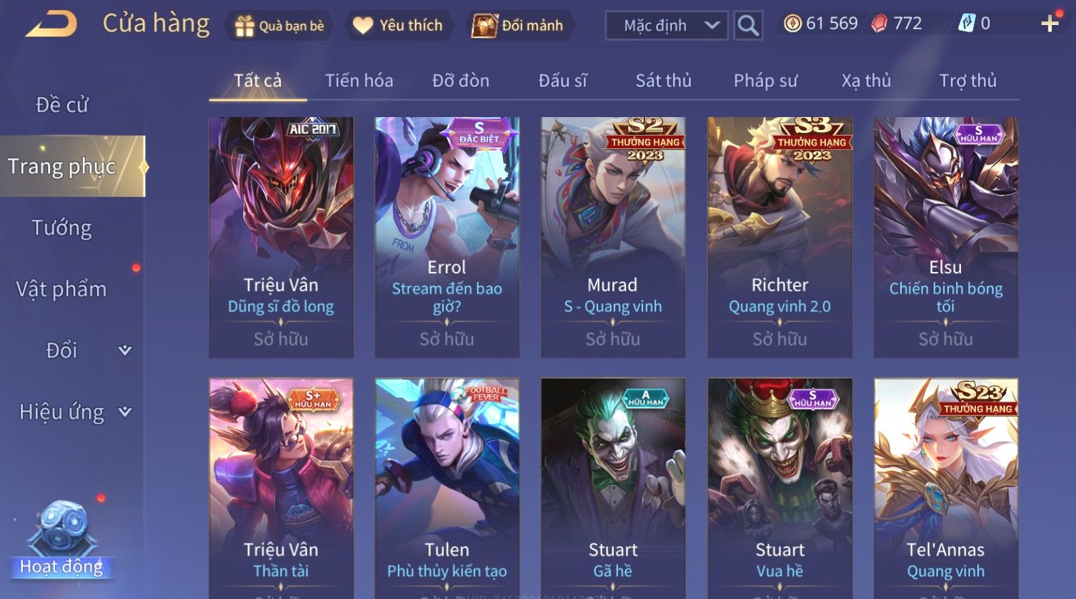Nổi bật: Skin: Raz Chiến Thần Muay Thái×Tulen Tiêu Dao Vũ Thần×Lauriel Thánh Quang Sứ×Richter Thần Kiếm Susanoo×Eland'orr Tuxedo Mask×Ryoma Thanh Long Bang Chủ×Paine Công Tước Máu×
