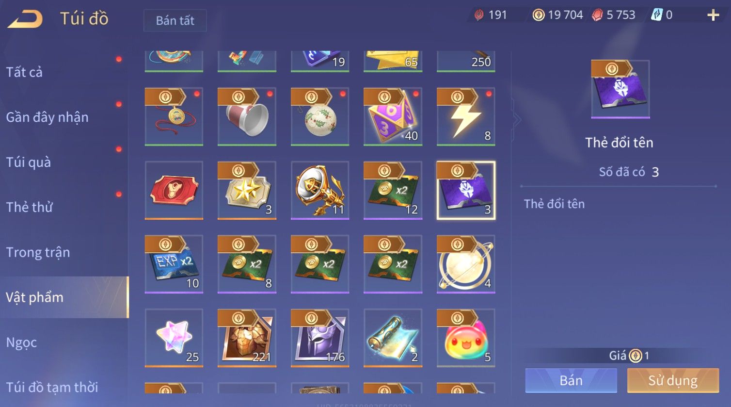 Trạng Thái: Nick có SĐT or Gmail Của Shop( Có Thể Thay Đổi)