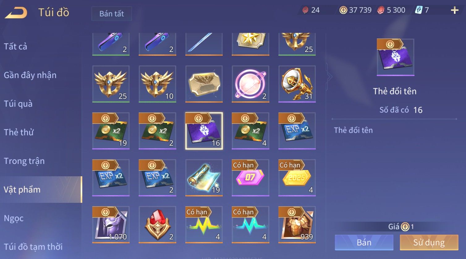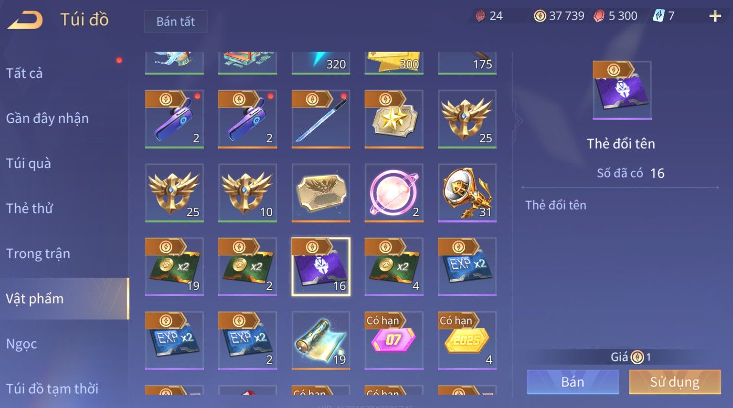 Trạng Thái: Nick có SĐT or Gmail Của Shop( Có Thể Thay Đổi)