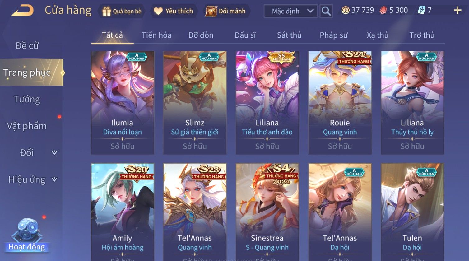 Nổi bật: Skin: Capheny Harley Quinn×Liliana WaVe×Natalya Nghiệp Hỏa Yêu Hậu×Liliana Tiểu Thơ Anh Đào×Capheny Kimono×Butterfly Kim Ngư Thần Nữ×Laville Xạ thần Tinh Vệ×Tel'Annas Vũ Khúc Yêu Hồ×Ilumia Nộ Hải Thiên Ngư×