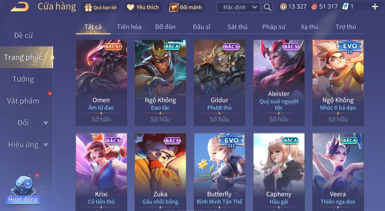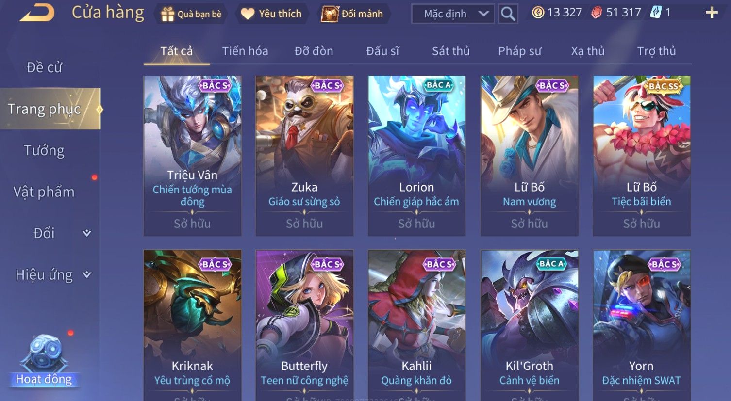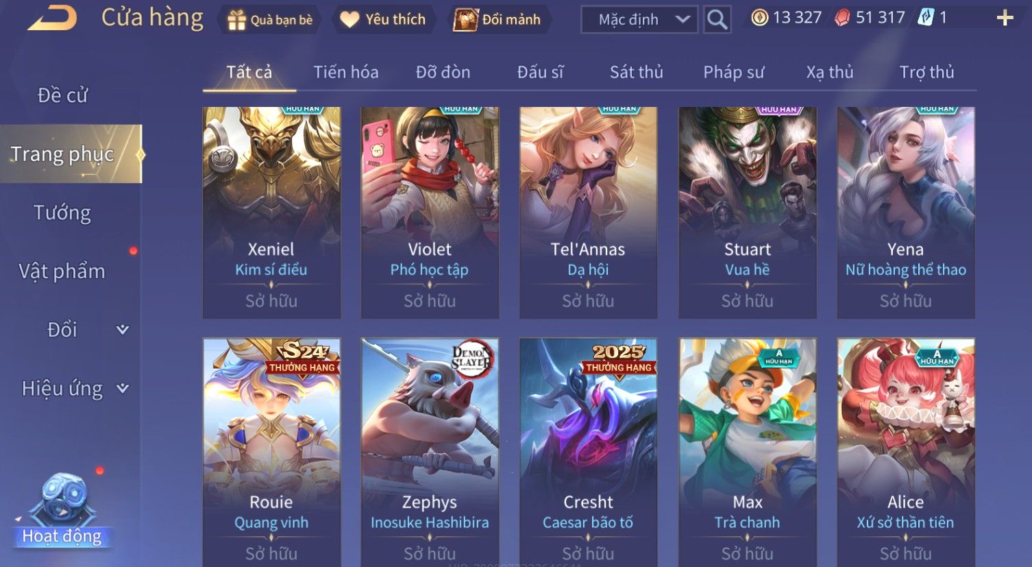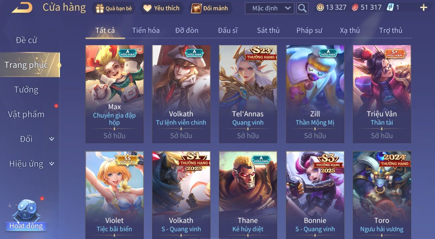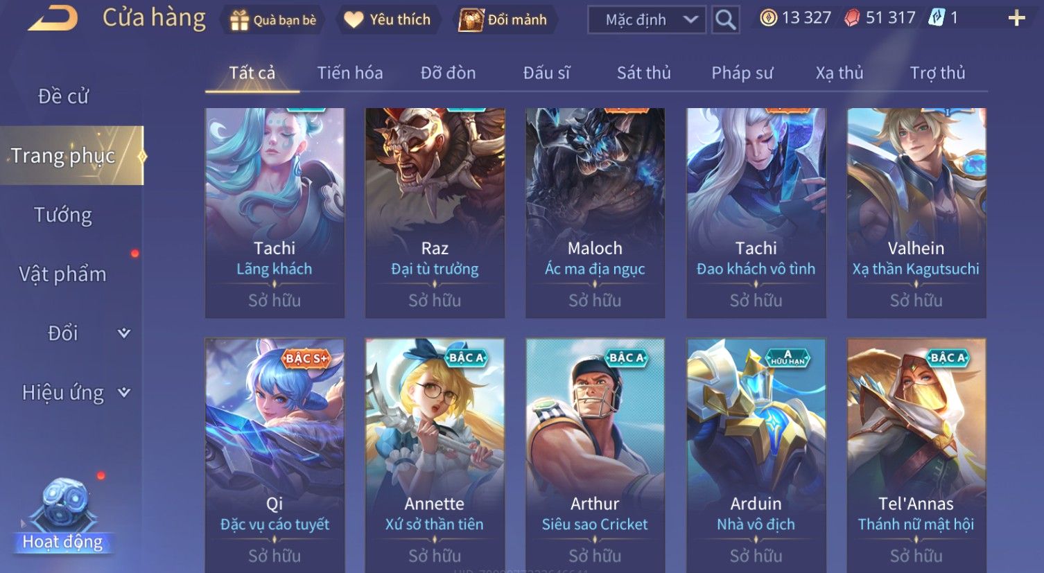 Nổi bật: Skin: Zephys Siêu Việt×Violet Tiệc Bãi Biển×Tel'Annas Thiên Vũ Thần Long×Maloch Đại Tướng Rô Bốt×Raz Siêu Việt×Tachi Đao Khách Vô Tình×Full Ngọc, Nhiều Skin SS Đẹp