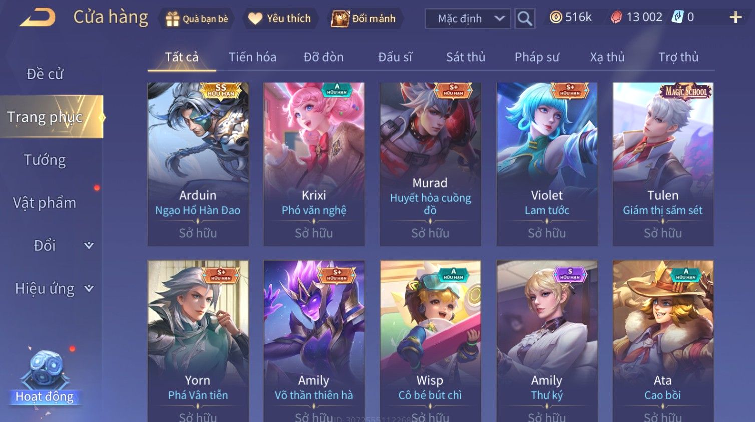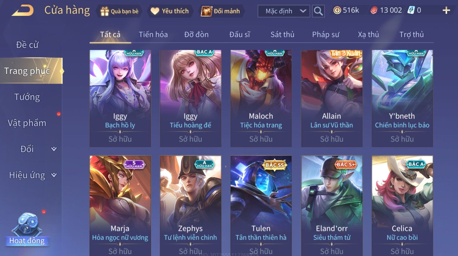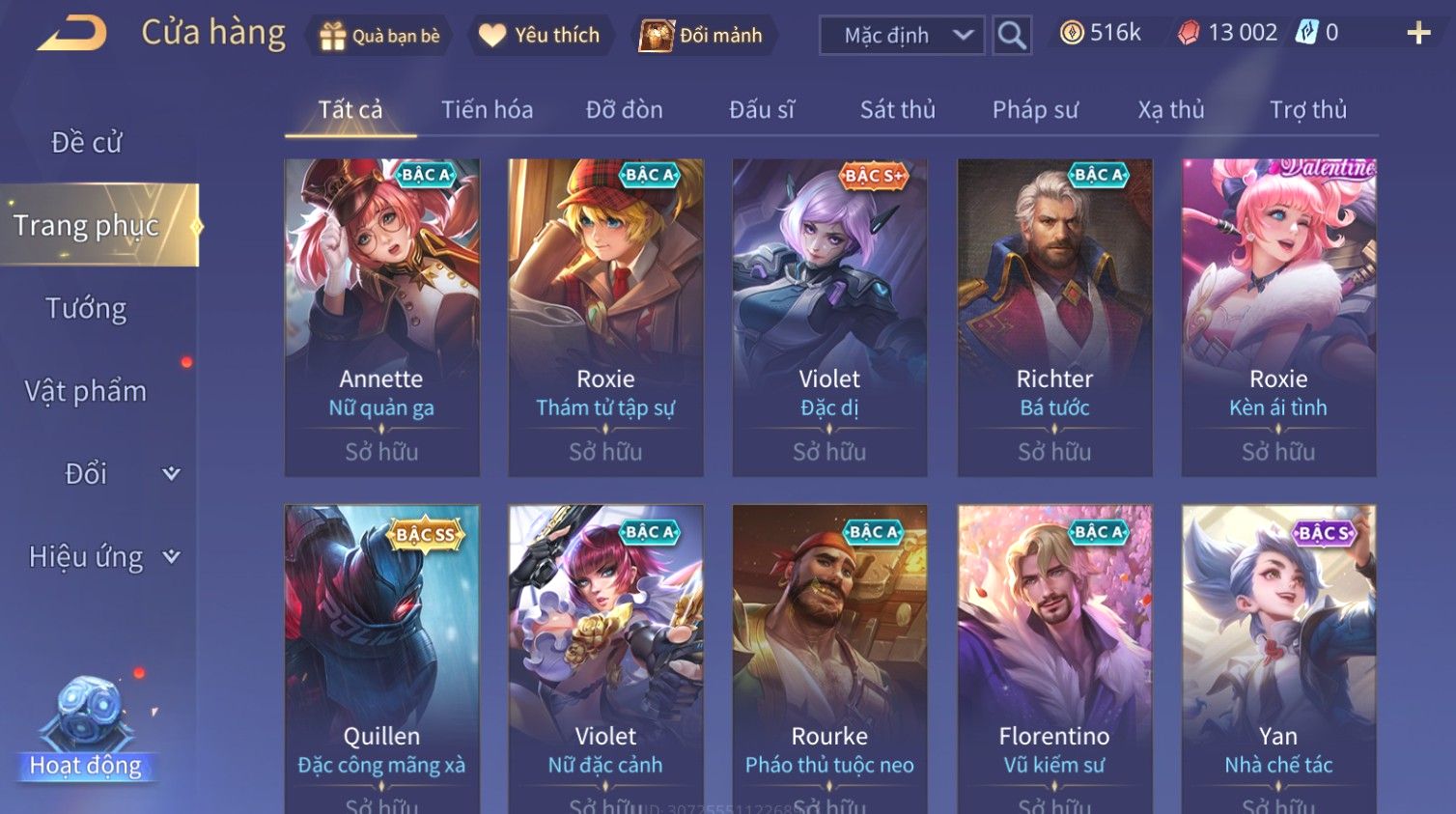 Trạng Thái: Nick có SĐT or Gmail Của Shop( Có Thể Thay Đổi)
