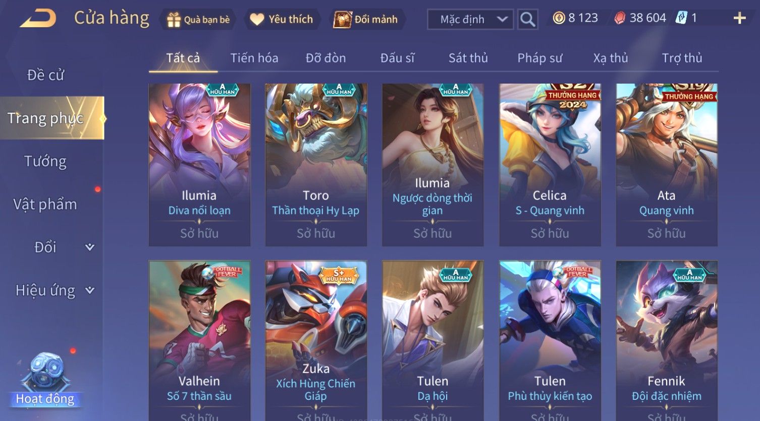 Nổi bật: Skin: Điêu Thuyền Thất Tịch Tiên Tử×Tel'Annas Thiên Vũ Thần Long×Violet Thần Long Tỷ Tỷ×Capheny Kimono×Florentino Giám Sát Tinh Hệ×Capheny Tử Đinh Hương×Full Ngọc, Nhiều Skin SS Đẹp