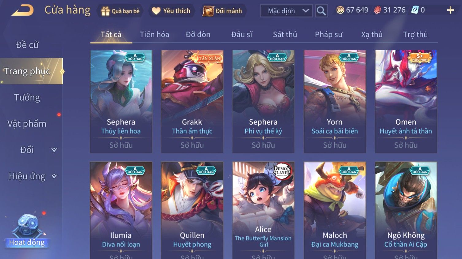 Nổi bật: Skin: Liliana Tiểu Thơ Anh Đào×Violet Thần Long Tỷ Tỷ×Liliana Nguyệt Mị Ly×Aya Mc Sóc Nhỏ×Full Ngọc, Nhiều Skin SS Đẹp
