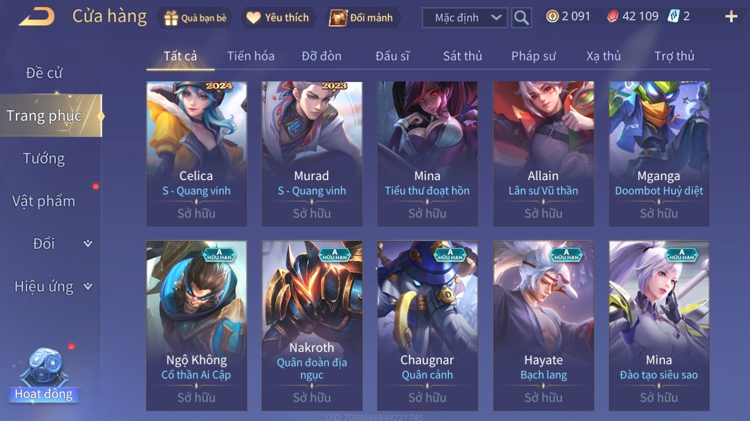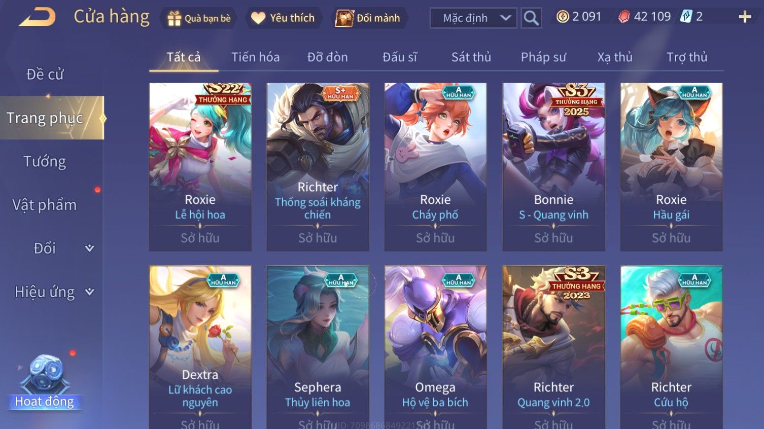 Nổi bật: Skin: Arthur Siêu Việt×Airi Kiemono×Maloch Đại Tướng Rô Bốt×Richter Thống Soái Kháng Chiến×Full Ngọc, Nhiều Skin SS Đẹp