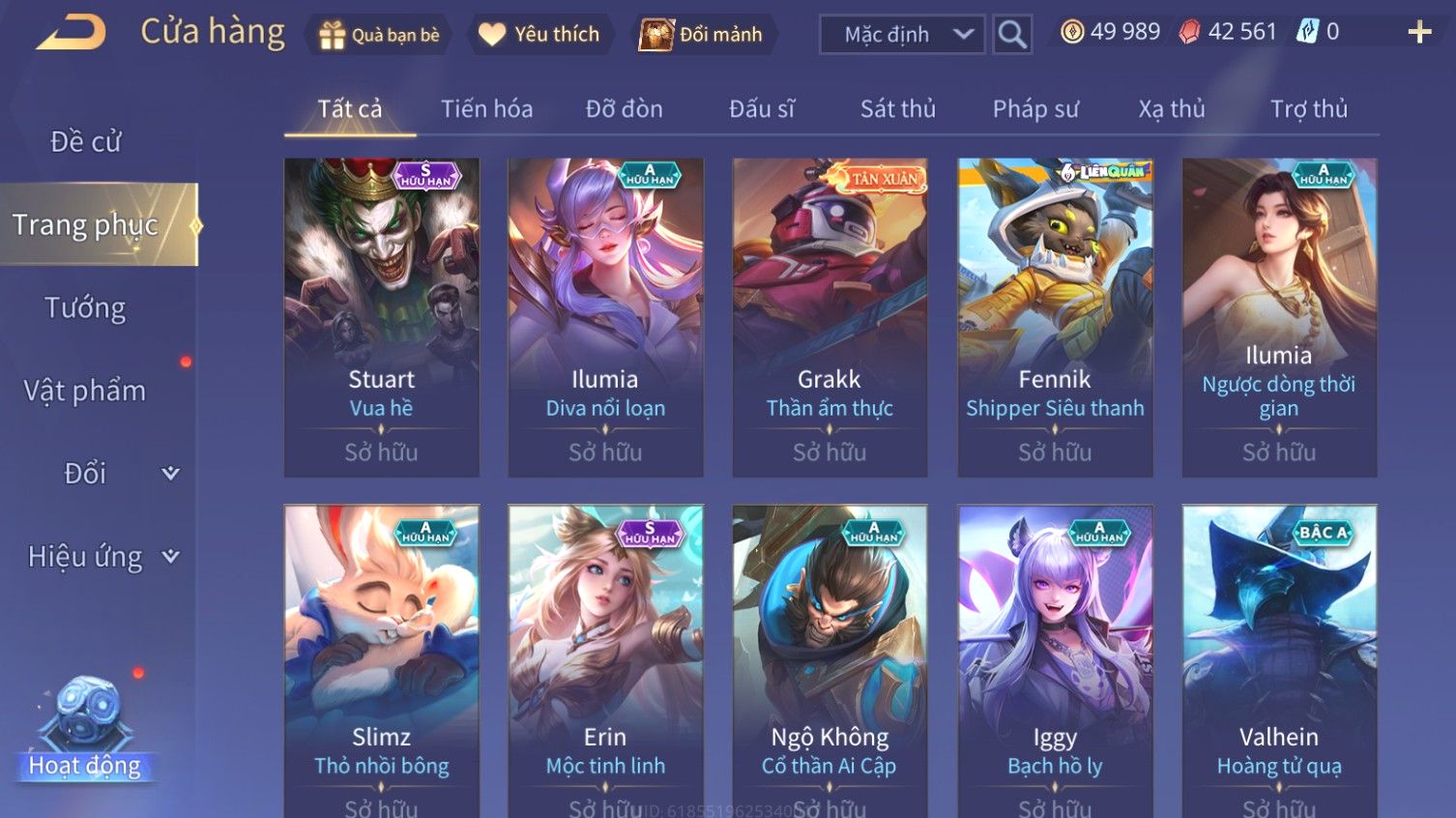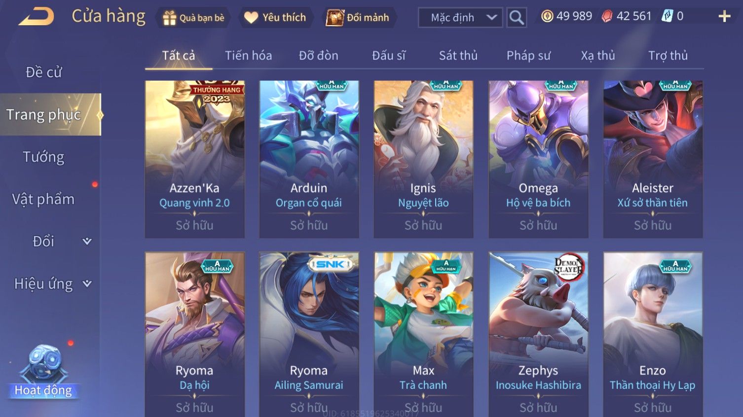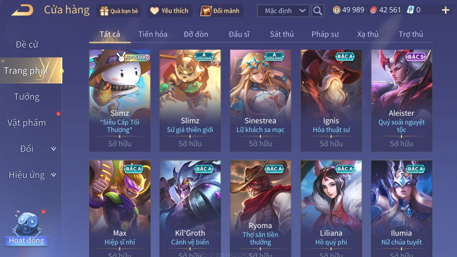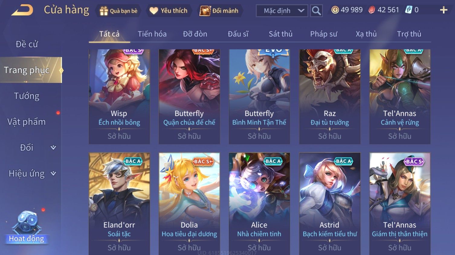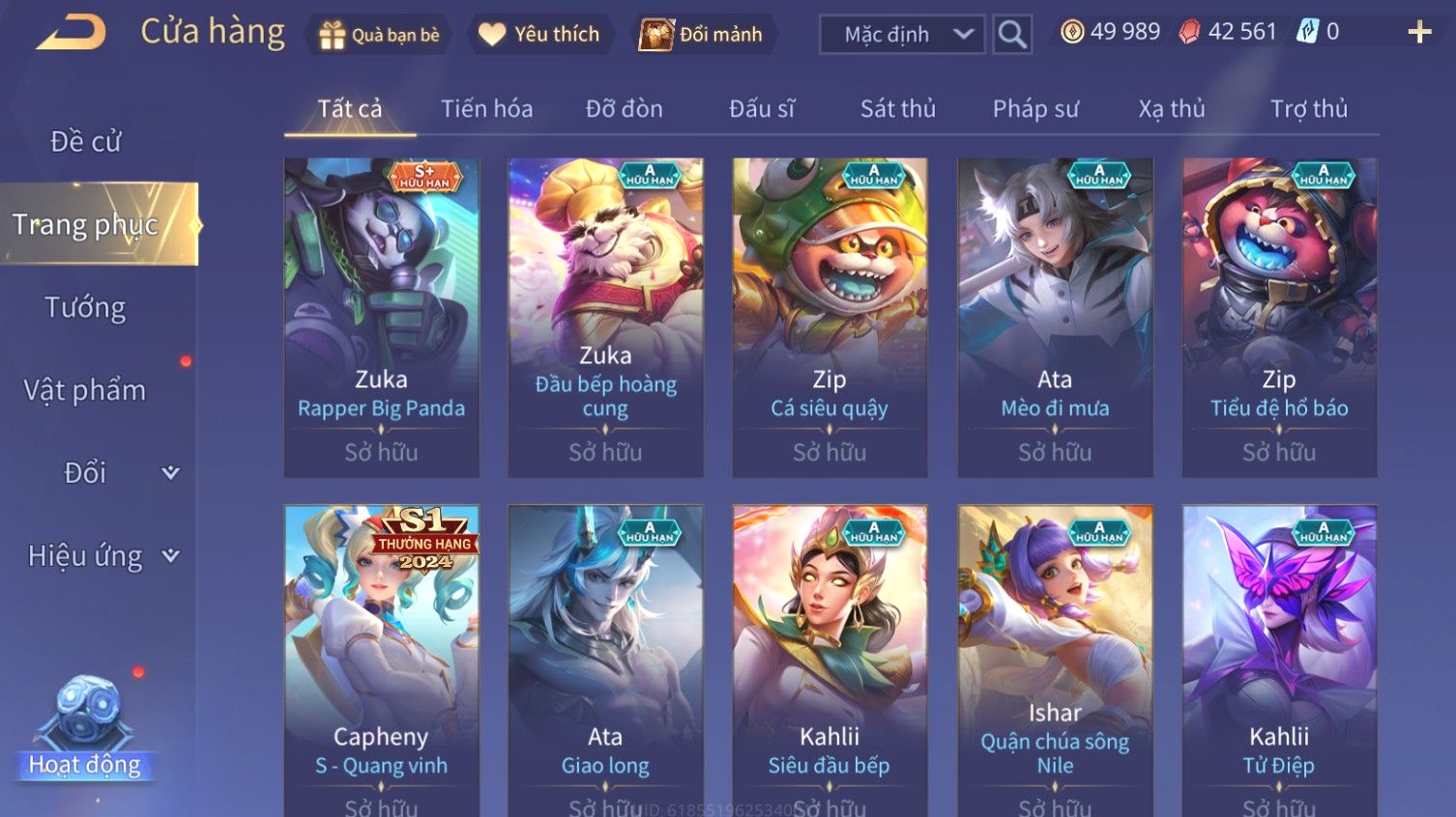 Nổi bật: Skin: Airi Bạch Kiemono×Violet Thần Long Tỷ Tỷ×Capheny Tử Đinh Hương×Butterfly Nữ Quái Nổi Loạn×Tachi Đao Khách Vô Tình×Sephera Bách Nhạn Ngân LinhFull Ngọc, Nhiều Skin SS Đẹp