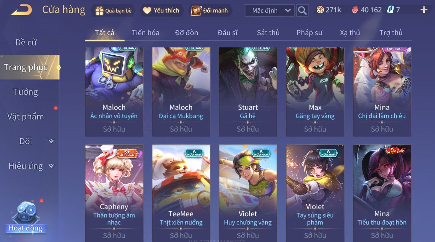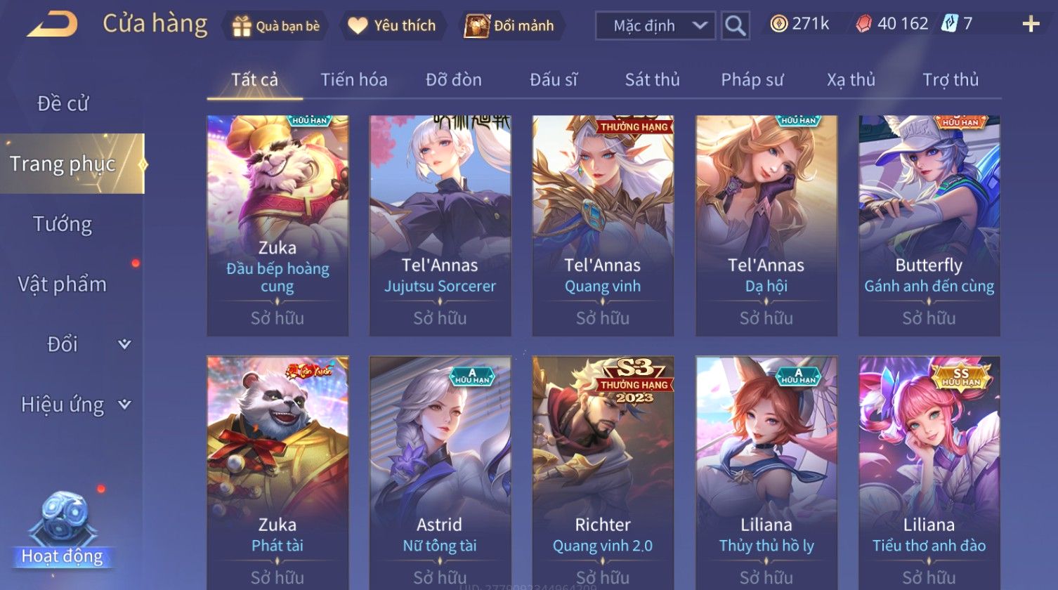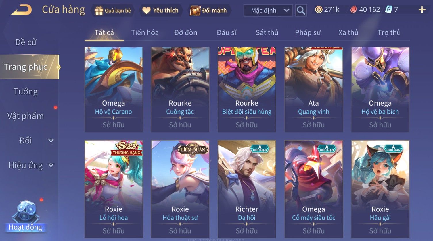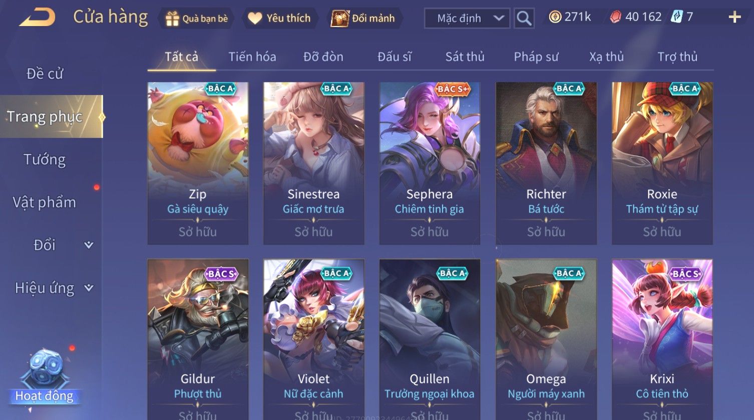 Nổi bật: Skin: Nakroth Lôi Quang Sứ×Murad Chí Tôn Thần Kiếm×Liliana Tiểu Thơ Anh Đào×Ngộ Không Thần Giáp Xích Diễm×Raz Chiến Thần Muay Thái×Violet Thần Long Tỷ Tỷ×Maloch Đại Tướng Rô Bốt×Ryoma Thanh Long Bang Chủ×Cresht Đại Sư Sushi×Full Ngọc, Nhiều Skin SS Đẹp
