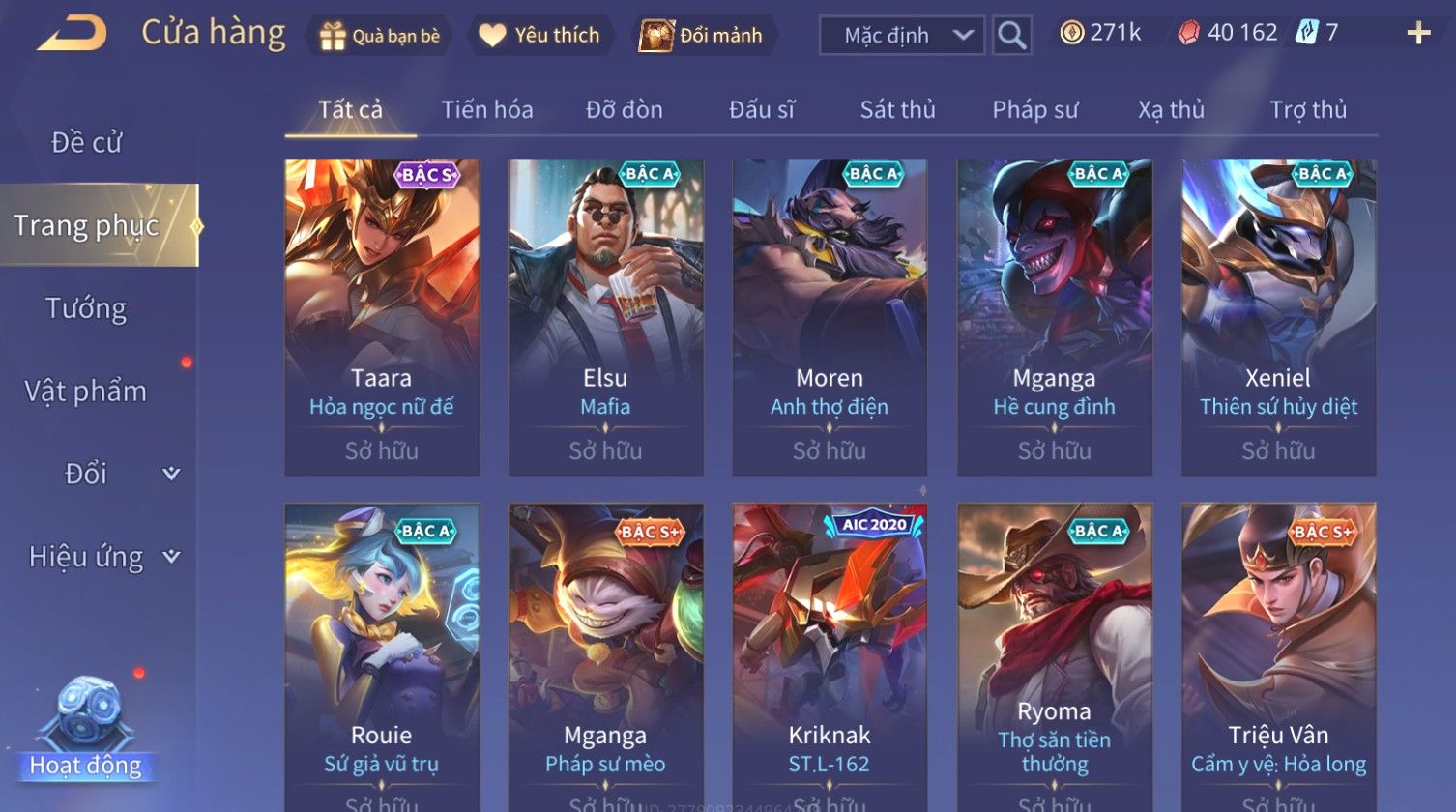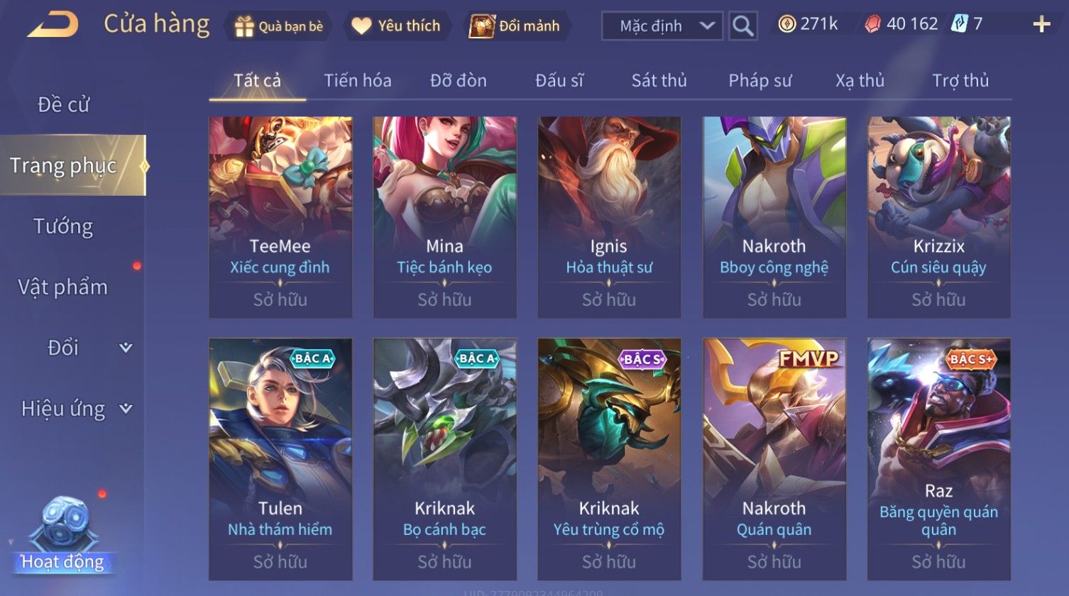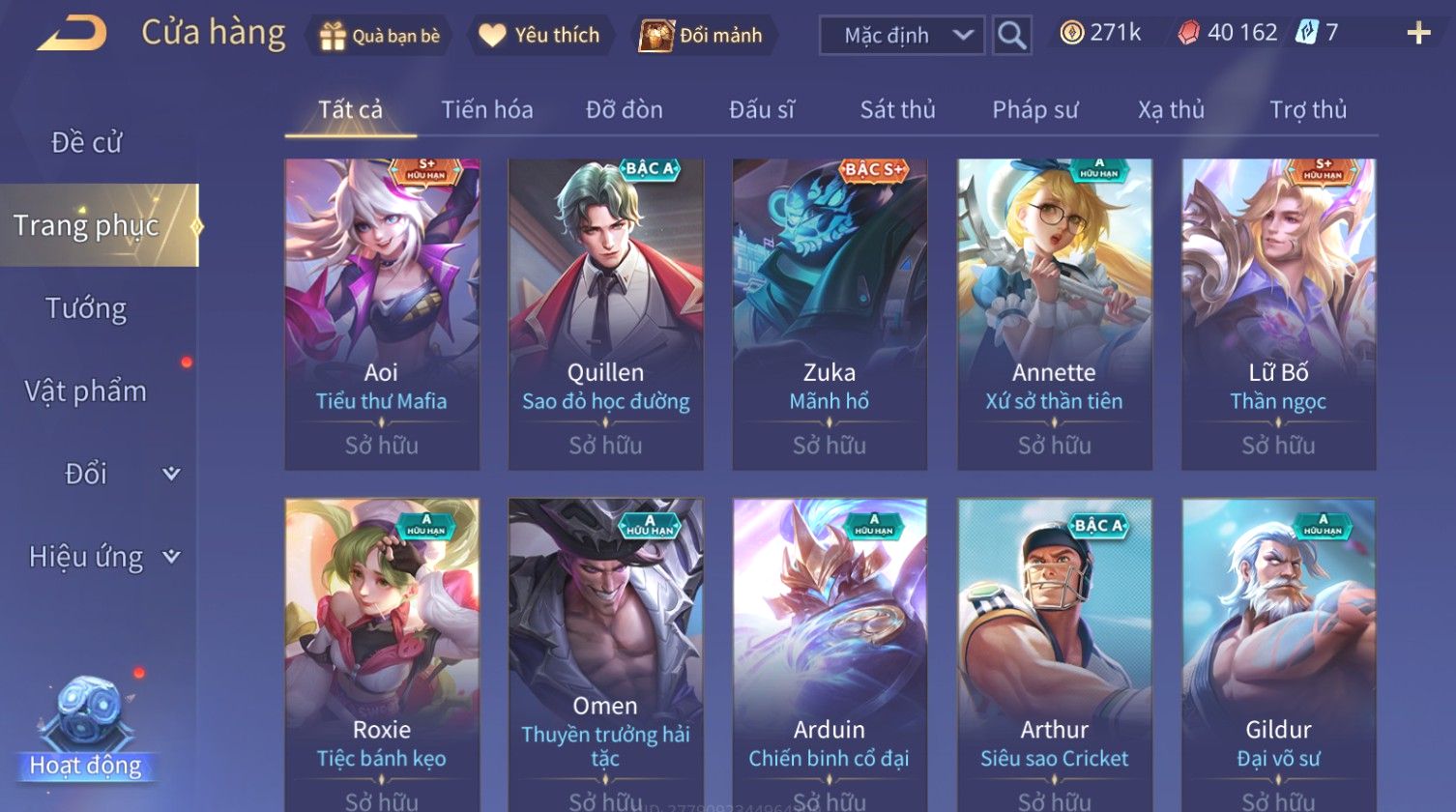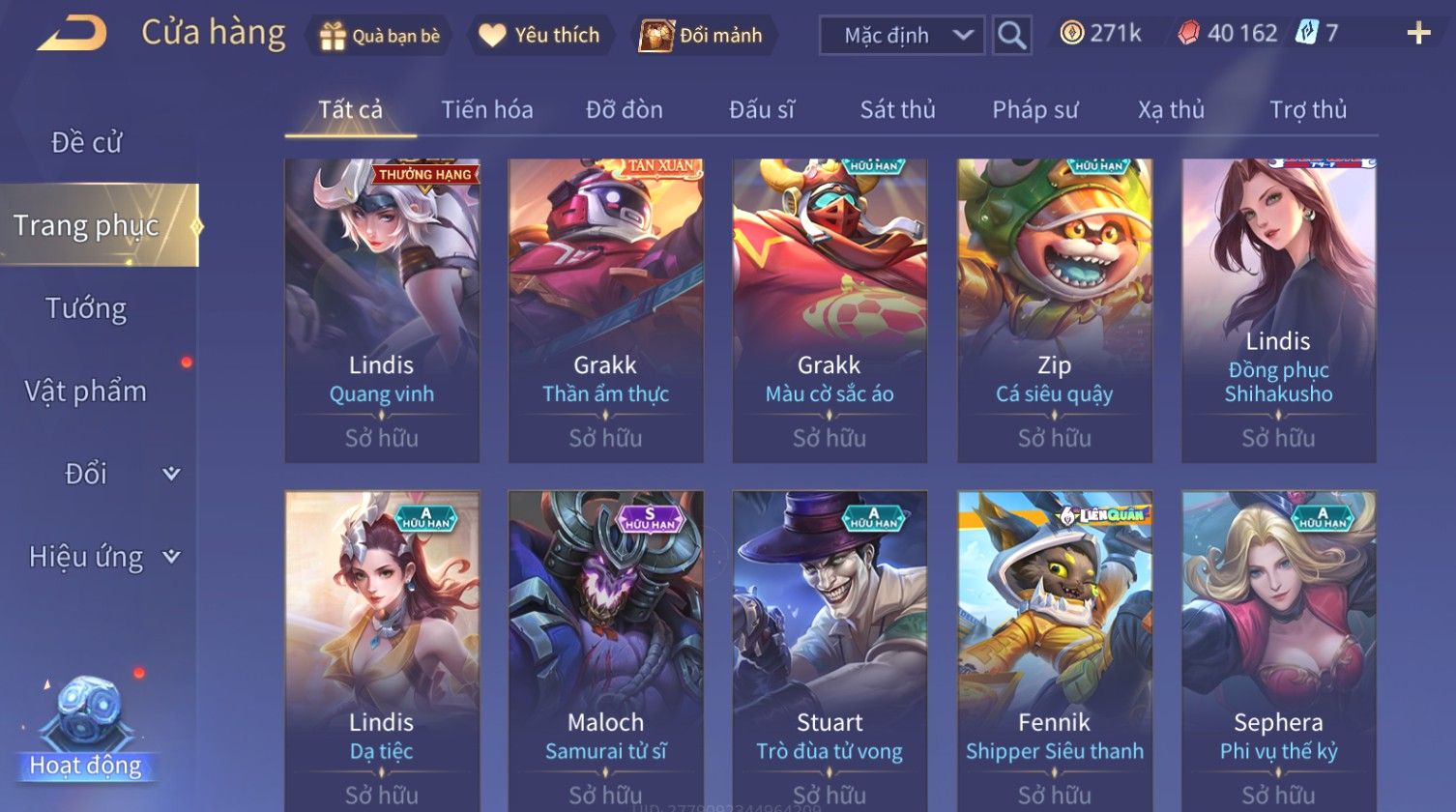 Nổi bật: Skin: Nakroth Lôi Quang Sứ×Murad Chí Tôn Thần Kiếm×Liliana Tiểu Thơ Anh Đào×Ngộ Không Thần Giáp Xích Diễm×Raz Chiến Thần Muay Thái×Violet Thần Long Tỷ Tỷ×Maloch Đại Tướng Rô Bốt×Ryoma Thanh Long Bang Chủ×Cresht Đại Sư Sushi×Full Ngọc, Nhiều Skin SS Đẹp