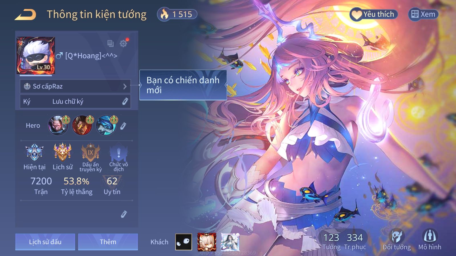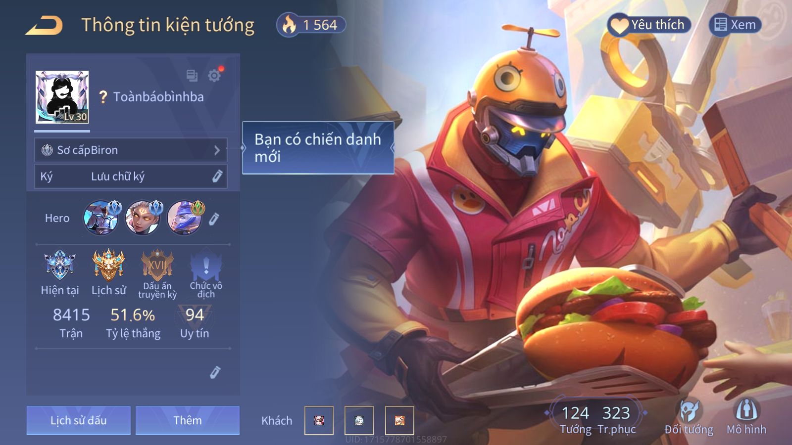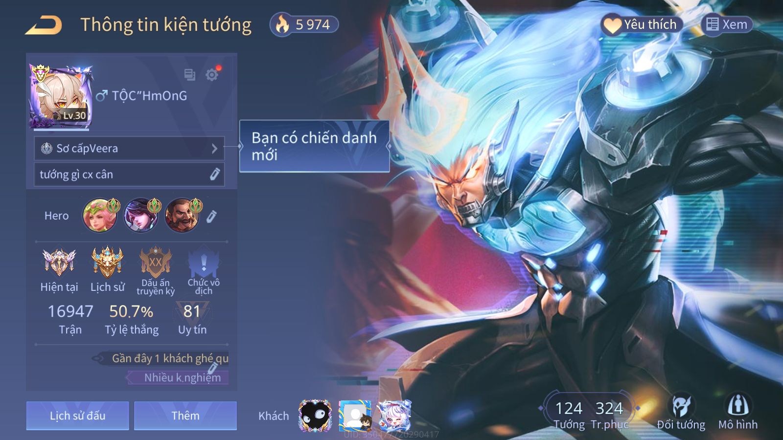 Mục Dành Cho Anh Em Trải Nghiệm Tướng, Skin, Rank