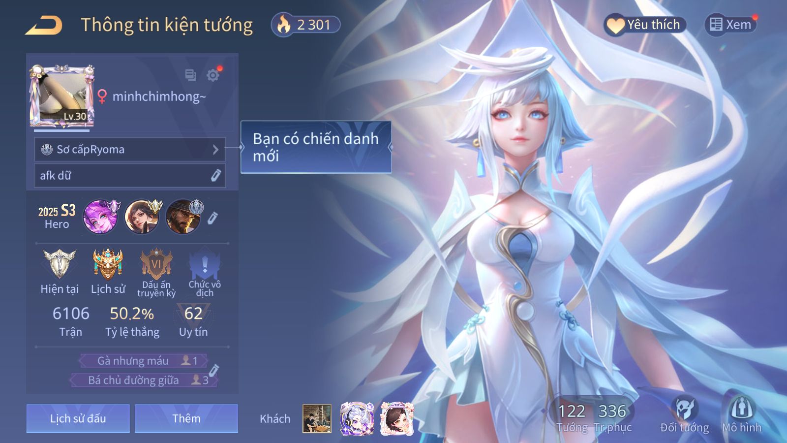 Mục Dành Cho Anh Em Trải Nghiệm Tướng, Skin, Rank